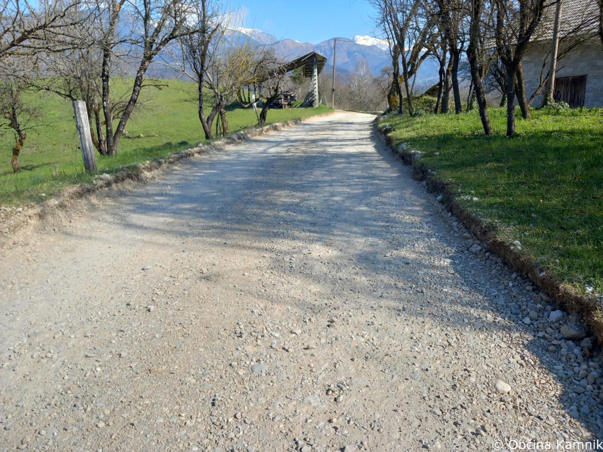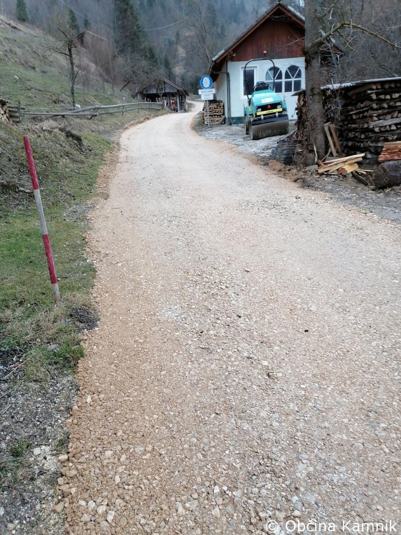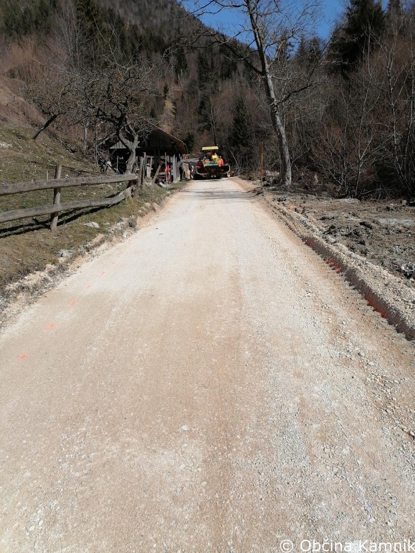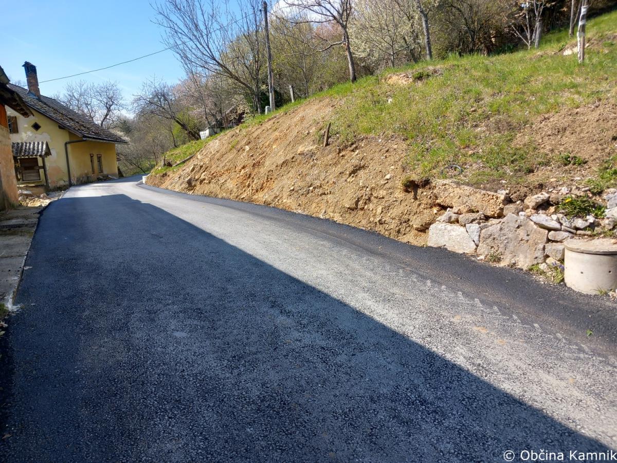 Izvajalec del, Resal, d. o. o., nadaljuje z izvajanjem del za asfaltiranje javne poti na območju Tunjic (Zadnji Vrh - LC 160041), v predvideni dolžini 1.560 metrov. Izvedel je asfaltiranje na območju naselja Hrib pri Kamniku (JP 661112), v predvideni dolžini 50 metrov.