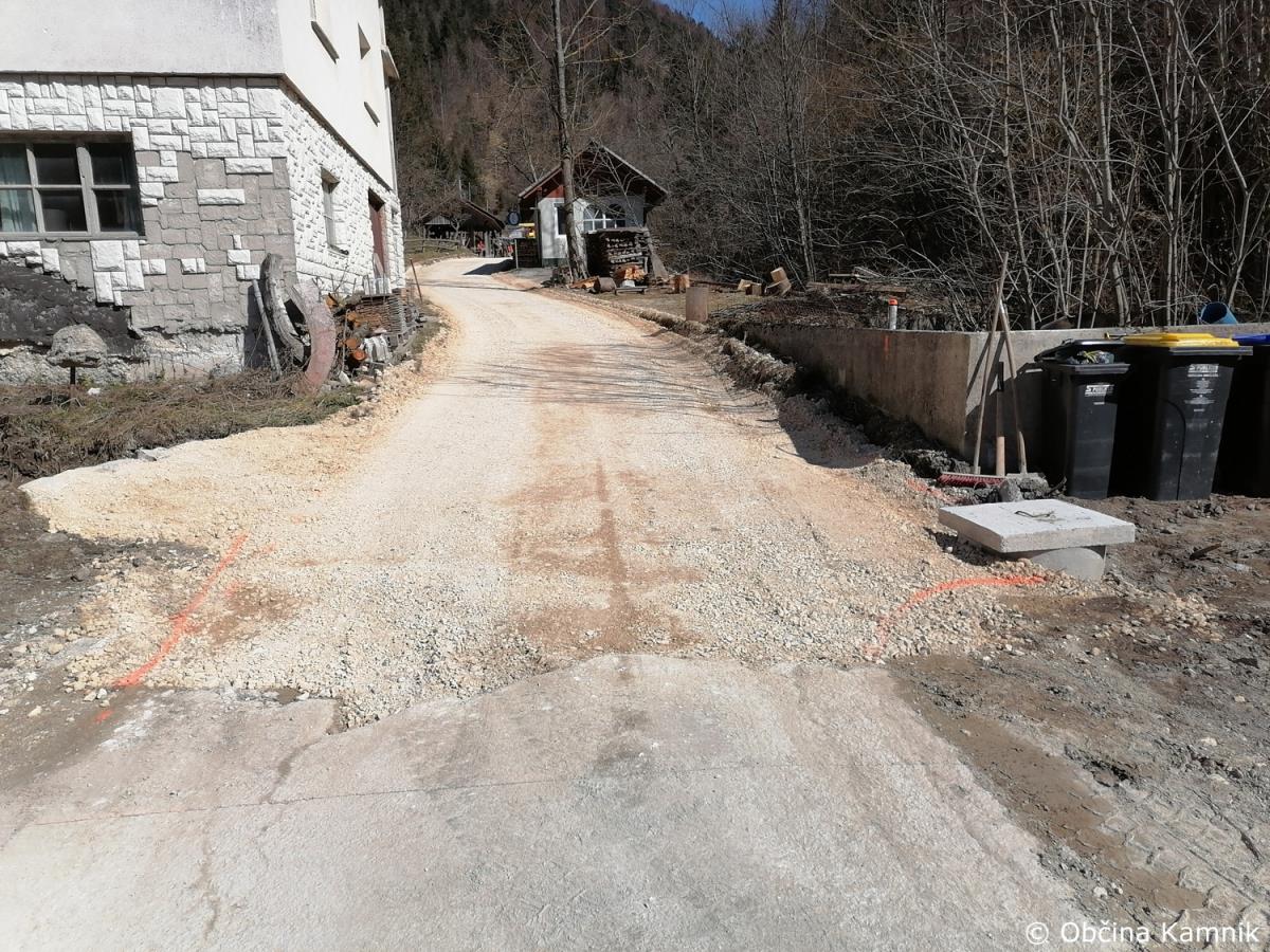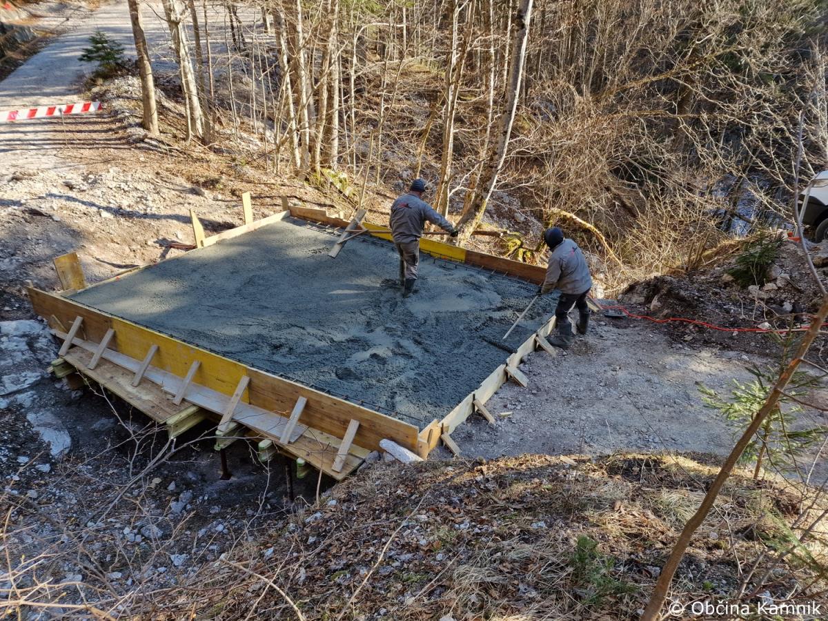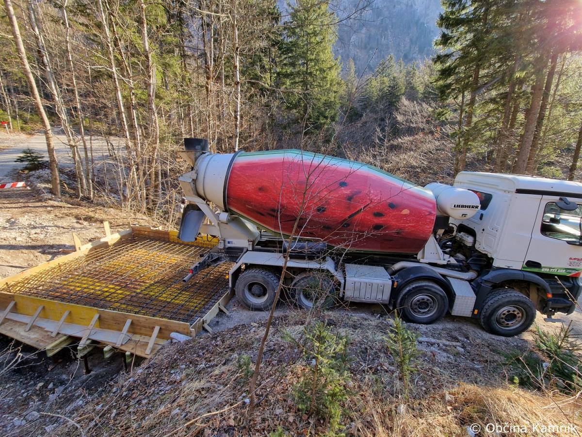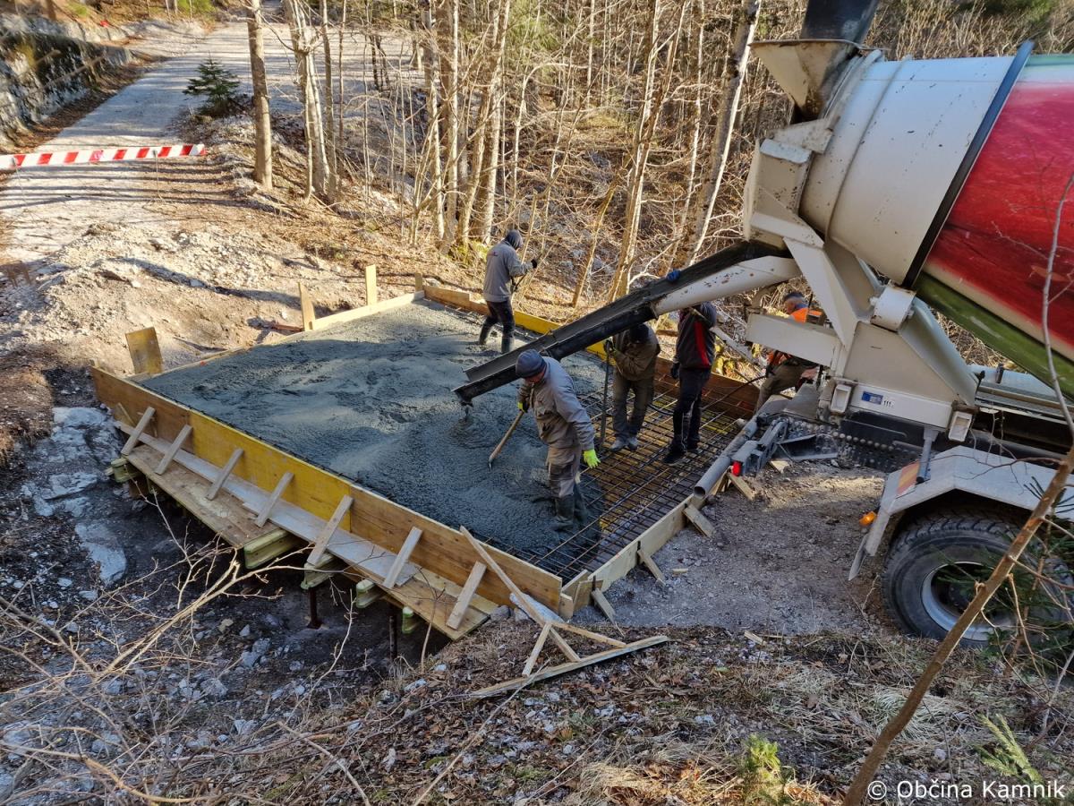 Začela so se gradbena dela na občinski cesti JP660727 Kamniška Bistrica, ki vodi do tovorne žičnice za Kokrsko sedlo. Gradnja zajema odstranitev vseh treh mostov, ureditev podpornikov mostu ter struge in postavitev treh novih mostov. V preteklem tednu je bilo izvedeno betoniranje prvega mostu. Nadzor nad gradnjo izvaja geomehanik in gradbeni nadzornik Martin Vrabec. Izvajalec del je podjetje VGVrankar, d. o. o. Vrednost sanacije vseh treh mostov je ocenjena na 33.714 evrov. Ocenjujemo, da bodo dela po terminskem planu zaključena do konca meseca maja 2023.