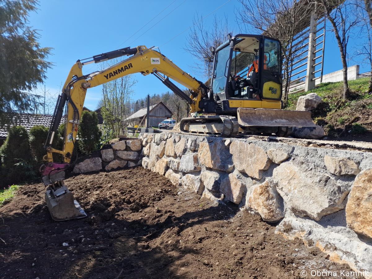 Gradnja podpornega zidu in parkirišča