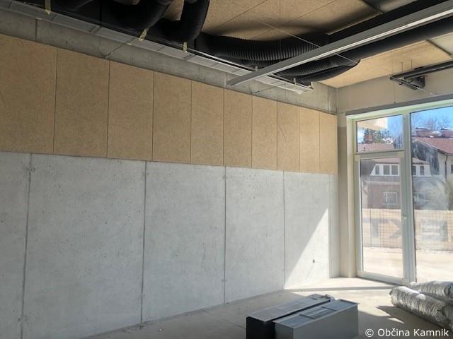 Potekajo tudi usklajevanja in potrjevanje vzorcev materialov in delavniških načrtov za posamezne rešitve in izvedbe detajlov.