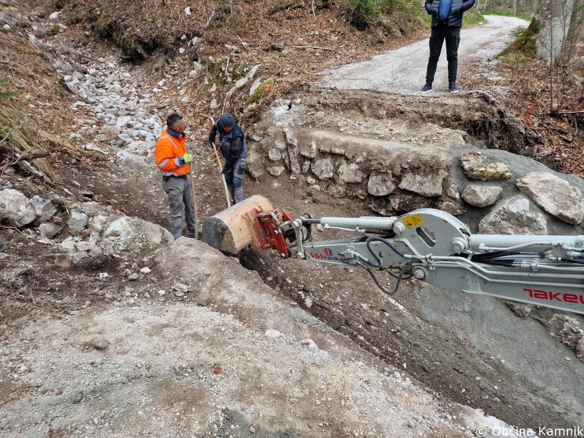 V preteklem tednu smo na občinski cesti JP660727 Kamniška Bistrica, ki vodi do tovorne žičnice za Kokrsko sedlo, nadaljevali s sanacijo treh mostov. Gradnja zajema ureditev opornikov mostu ter struge, ter postavitev treh novih mostov. Trenutno potekajo dela na drugem objektu mostu, kjer se izvaja sanacija opornikov in priprava za betoniranje plošče. Nadzor nad gradnjo izvaja geomehanik in gradbeni nadzornik Martin Vrabec, izvajalec del pa je podjetje VGVrankar d.o.o. Vrednost sanacije vseh treh mostov je ocenjena na 33.714 evrov. Ocenjujemo, da bodo dela po terminskem planu zaključena do konca meseca maja 2023.