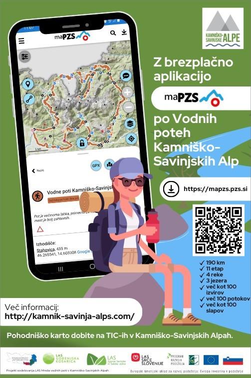 Trasa poti je predstavljena na novi pohodniški karti Vodne poti Kamniško-Savinjskih Alp, ki jo lahko dobite v turistično-informacijskih centrih v Kamniku, Solčavi, Lučah, na Ljubnem, v Preddvoru, na Jezerskem in v Cerkljah. Celotna pot je skupaj z opisi naložena tudi v mobilno pohodniško aplikacijo maPZS, ki si jo prenesete na telefon brezplačno s spletne strani mapzs.pzs.si. Traso poti imate tako ves čas ob sebi na svojem telefonu. Če se odpravljate na območja brez signala, si lahko zemljevid in podatke o izletu vnaprej naložite v telefon in jih uporabljate tudi, če prenos podatkov ni mogoč.