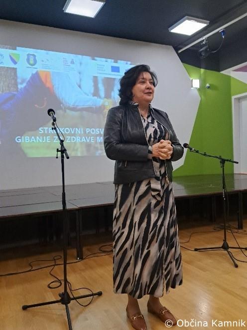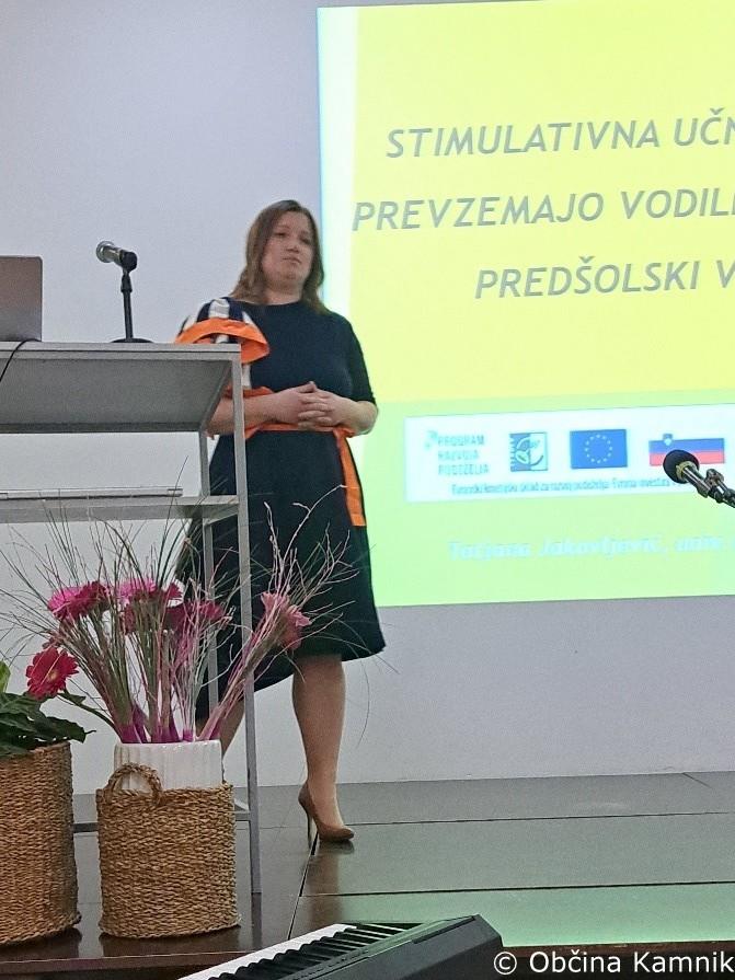 Pomočnica ravnatelja Vrtca pri OŠ Janka Modra Zdenka Peklaj in ravnateljica Vrtca Antona Medveda Kamnik mag. Liana Cerar sta predstavili potek projekta »Gibanje za zdrave možgane«, kjer so uredili obstoječe zunanje igralne površine ob vrtcu pri OŠ Janka Modra Dol pri Ljubljani in otroškem igrišču enote vrtca Kekec pri OŠ Stranje.