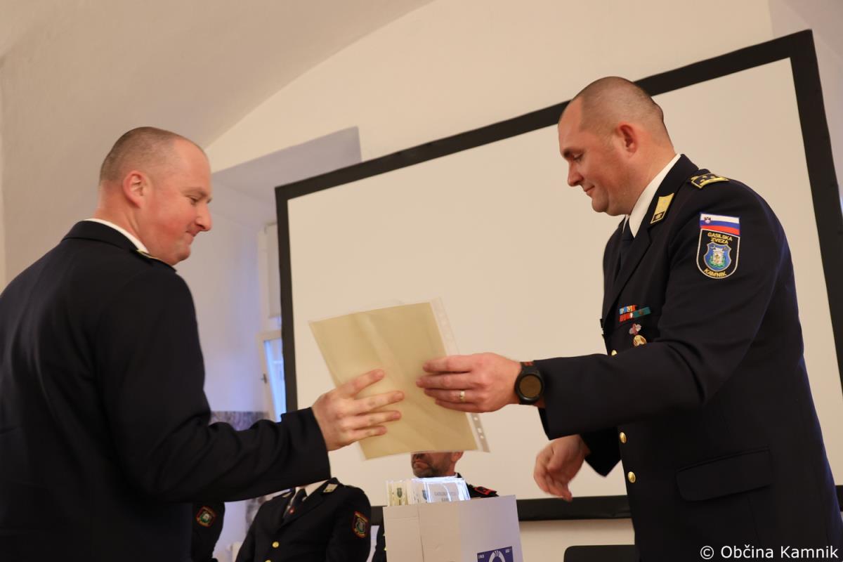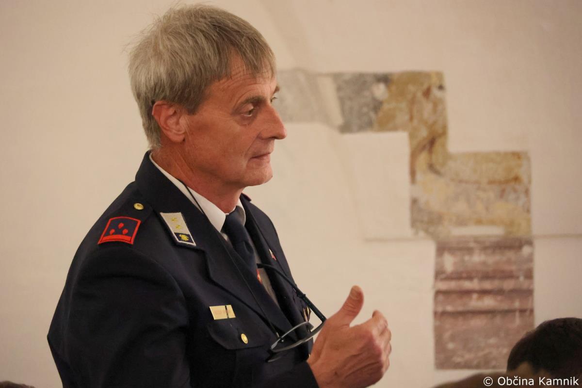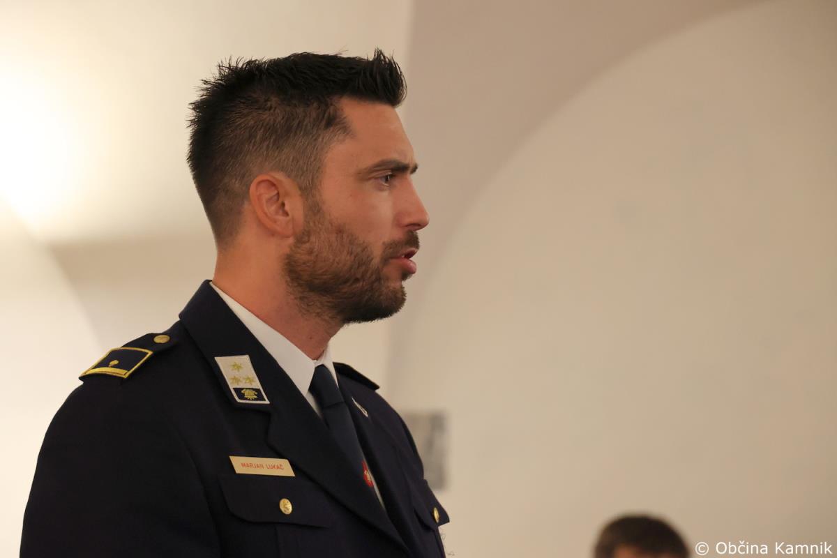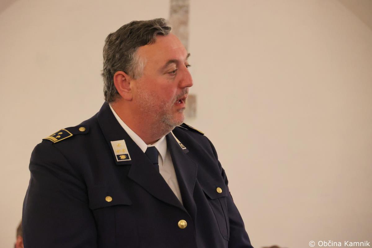 Župan Matej Slapar pa je ob tej priložnosti povedal: »Lepo pozdravljeni s strani Občine Kamnik in že takoj na začetku velika zahvala vsem 13 gasilskim društvom, vključenih v Gasilsko zvezo Kamnik, za vzorno delovanje in to, da ste občankam in občanom pripravljeni priskočiti na pomoč vsak dan znova in znova, vse dni v letu. Gasilska zveza Kamnik je zgledno opremljena, torej vseh njenih 13 društev, dobro izobražena, imate zagnano mladino, delovne članice in člane ter spoštovanja vredni veterani, zato se vam iskreno zahvaljujem, ker ste to, kar ste. Naše občanke in občani se počutijo varnejše. Iskrena hvala tudi tebi Tomaž za sodelovanje in vse, kar si za Gasilsko zvezo Kamnik naredil v vseh teh letih. Mislim, da je bilo za Gasilsko zvezo Kamnik narejeno marsikaj in si takšnega sodelovanja želim tudi v prihodnje. Iskrena hvala in čestitke novemu vodstvu.«