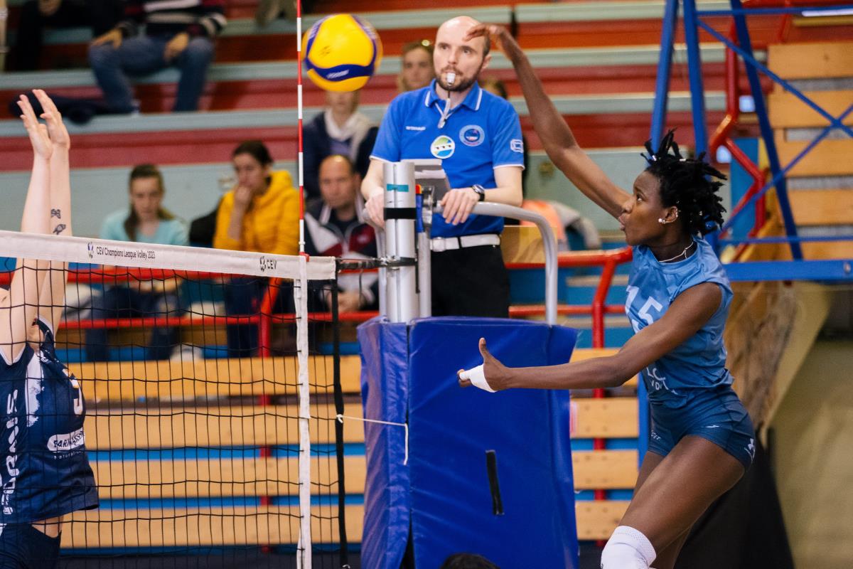 Novogoriške odbojkarice so prvi niz začel na najboljši možni način, z asom Pie Blažič, nato pa še enim asom, tokrat Julije Mohorič, za vodstvo s 5:2. Toda odgovor Kamničank je bil še boljši, kajti z asom Sare Hutinski so izid že na peti točki izenačile, z novim uspešnim napadom Fatoumatte Sillah, tretjim na tekmi, pa povedle s 6:5. Nalet gostij je Vasja Lipicer Samec zaustavil s polminutnim odmorom, drugega pa je vzel po treh zaporednih točkah Kamničank, zadnjo je z asom dosegla Nina Stojilković in njihovemu vodstvu s 13:10. Do odločilne prednosti so gostje prišle na servis Maše Pucelj, ko so po točki Sare Hutinski povedle z 18:11. Pred vstopom v končnico niza so se jim domače odbojkarice približale na tri točke zaostanka, v napadu je bila uspešna Pia Blažič (17:20), vendar je bilo po bloku Pucljeve že 23:18 za kamniško ekipo. Niz je s prvo zaključno žogo končala Sillahova.