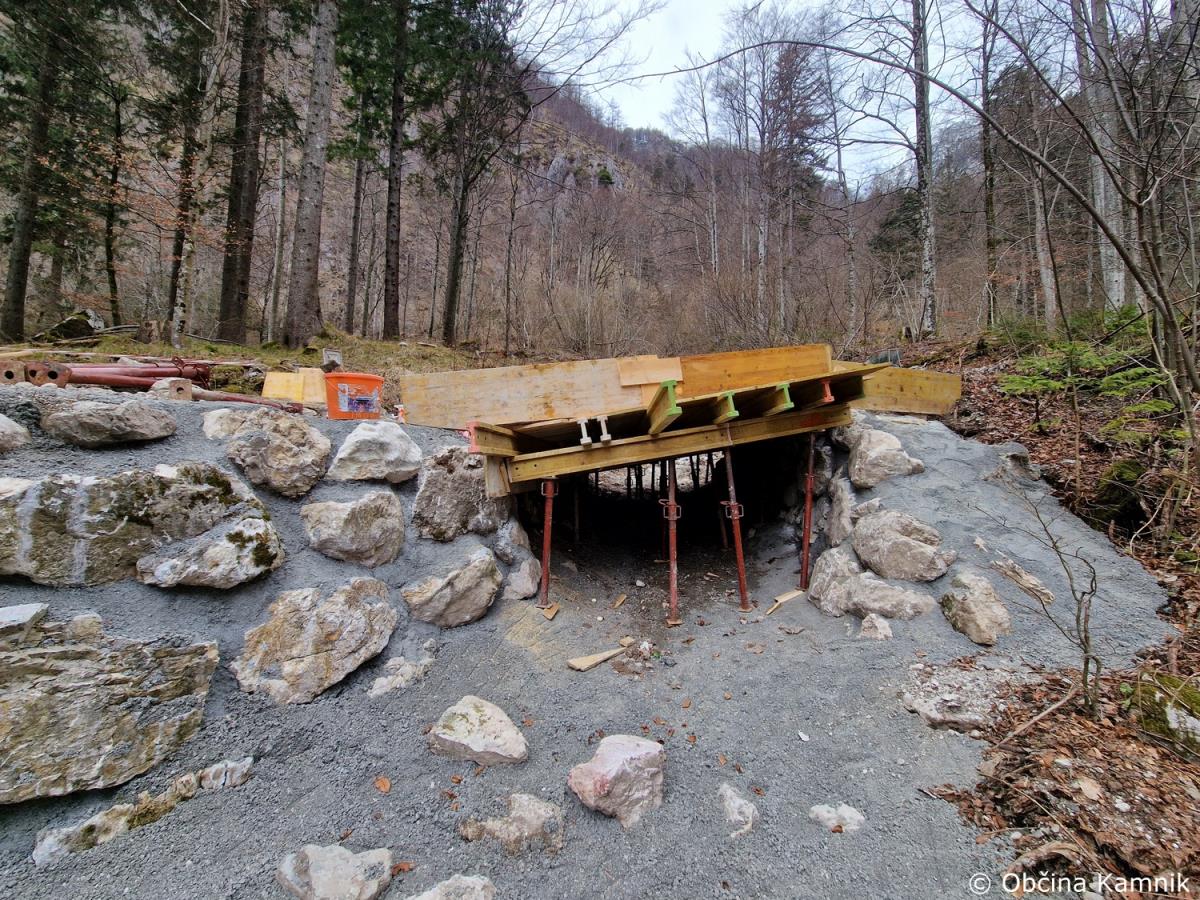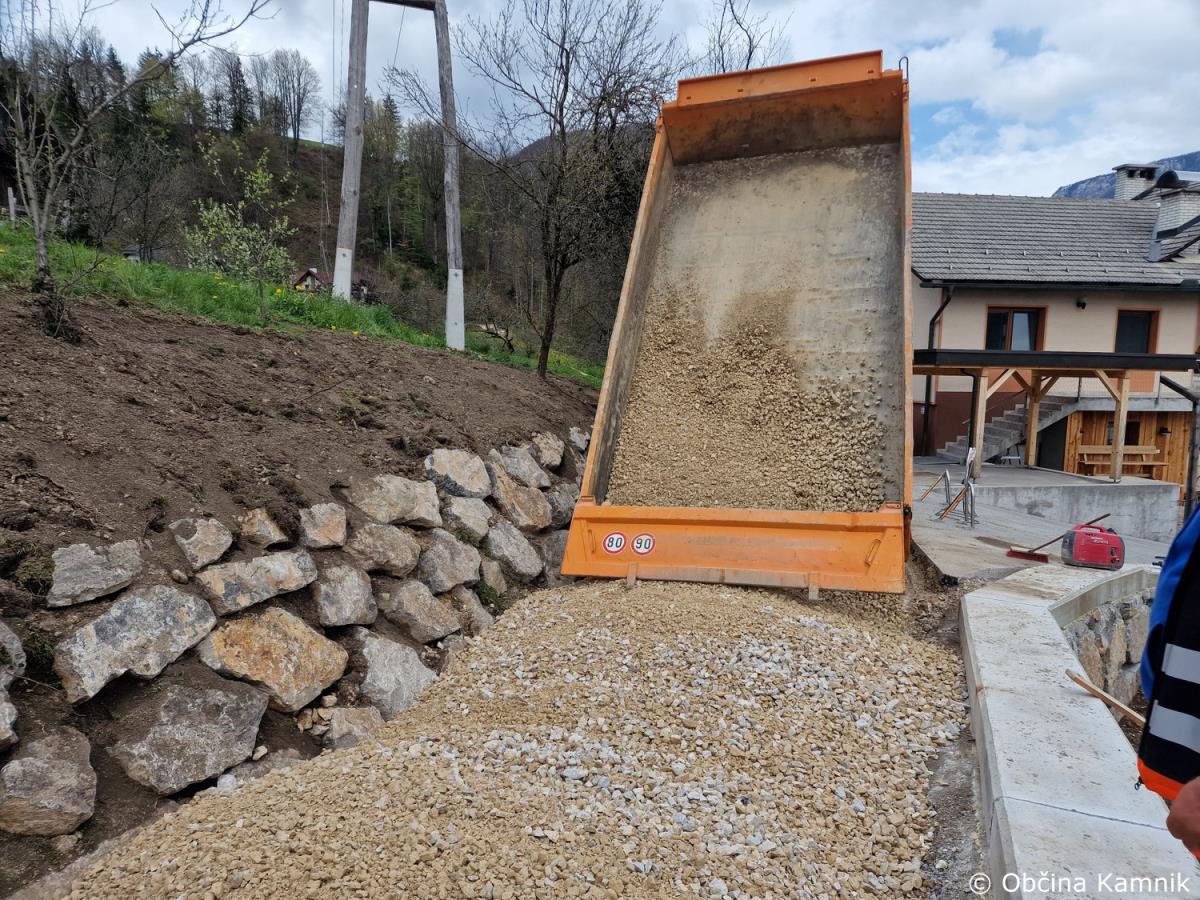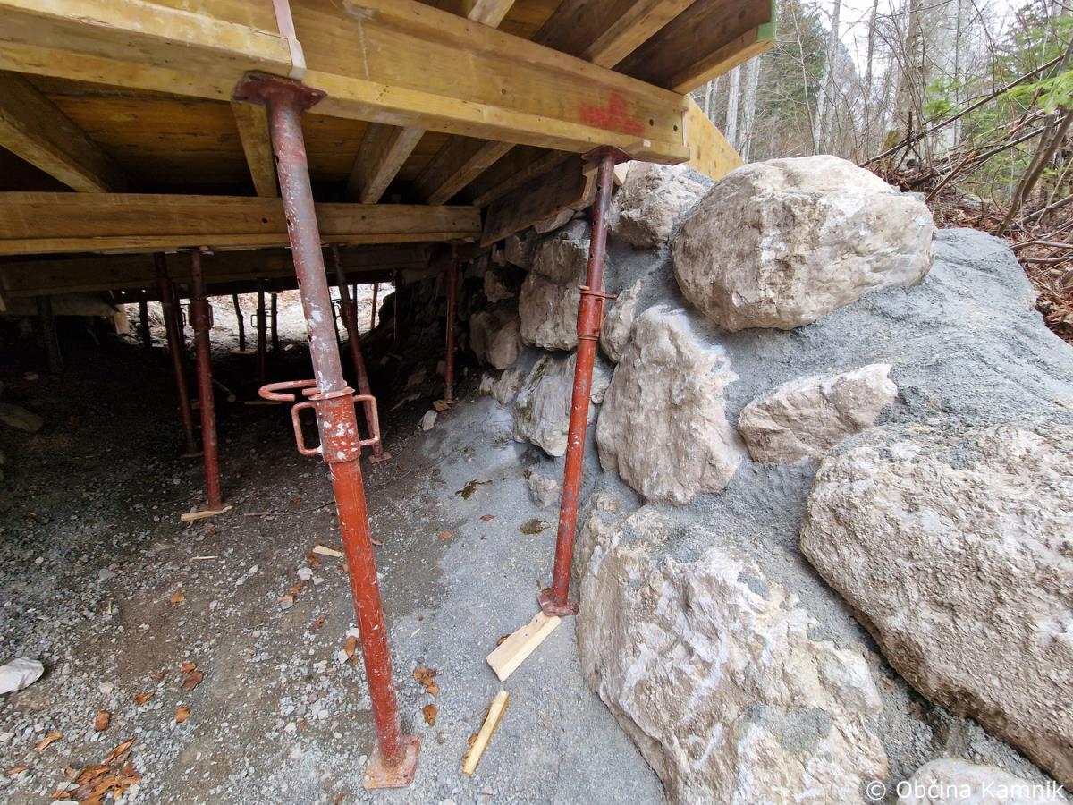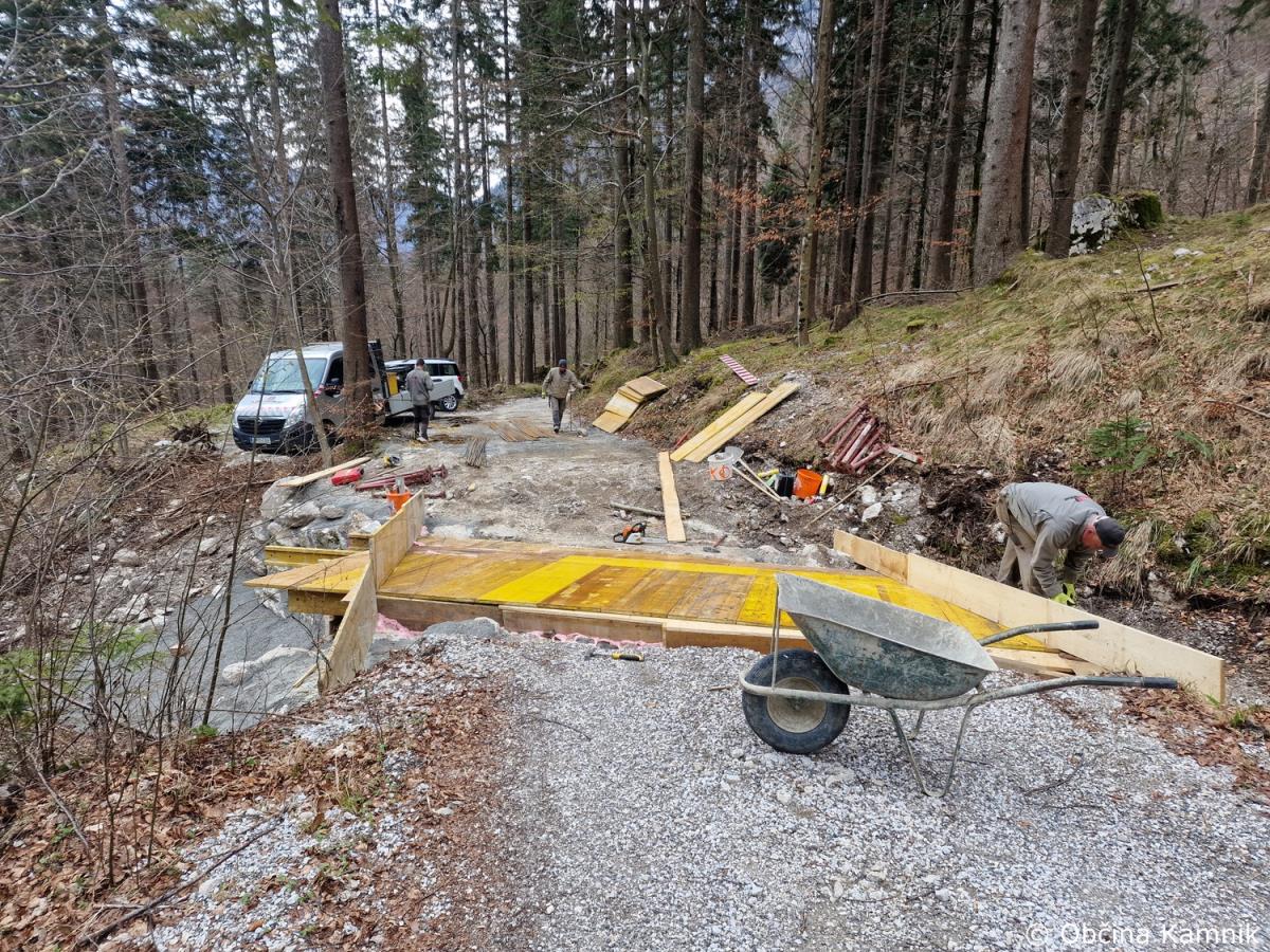 Na občinski cesti JP660727 Kamniška Bistrica, ki vodi do tovorne žičnice za Kokrsko sedlo, se nadaljuje sanacija treh mostov. Gradnja zajema ureditev opornikov mostu ter struge in postavitev treh novih mostov. Trenutno potekajo dela na drugem objektu mostu, kjer se pripravlja opaž, v katerega bo položena armatura, ki bo nato zalita z betonom.