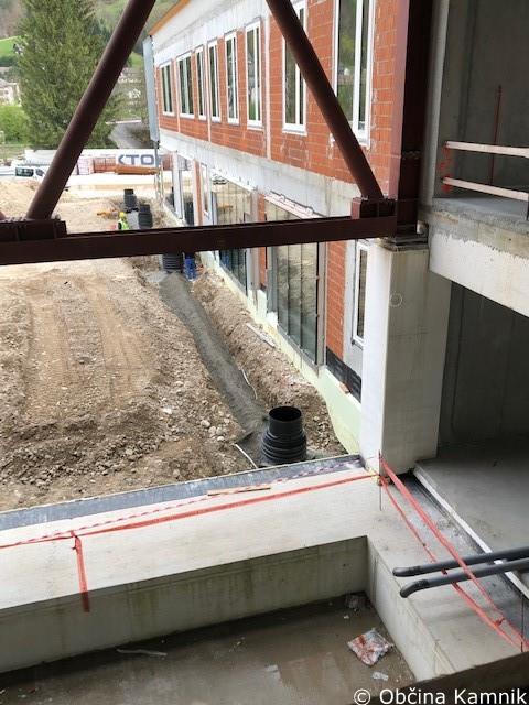 V dvoriščnem atriju se je v preteklem tednu izvajala glavna fekalna in meteorna kanalizacija. Potekajo tudi usklajevanja in potrjevanje vzorcev materialov in delavniških načrtov za posamezne rešitve in izvedbe detajlov; na operativnem sestanku je bil s strani izvajalca predstavljen CNS (nadzorni sistem - regulacija strojnih naprav, meritve ….), ki bo vgrajen v objekt.