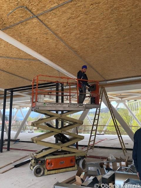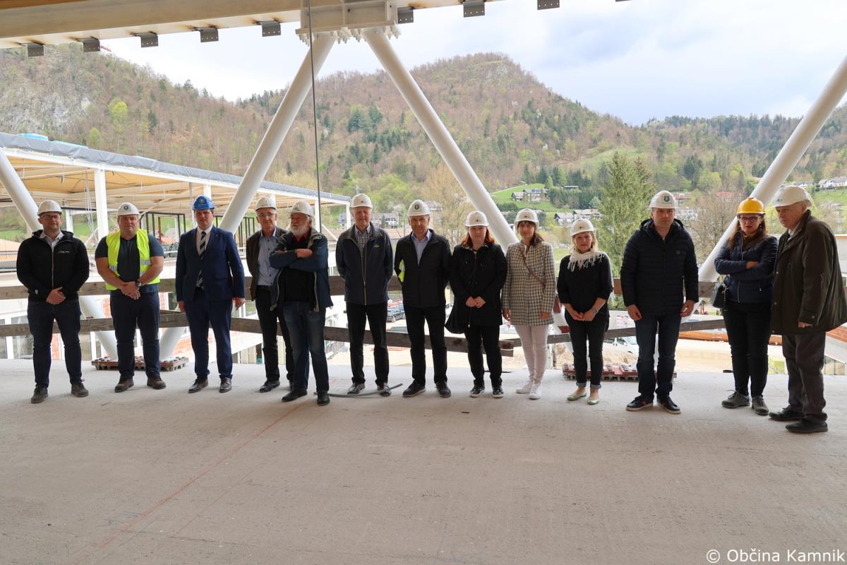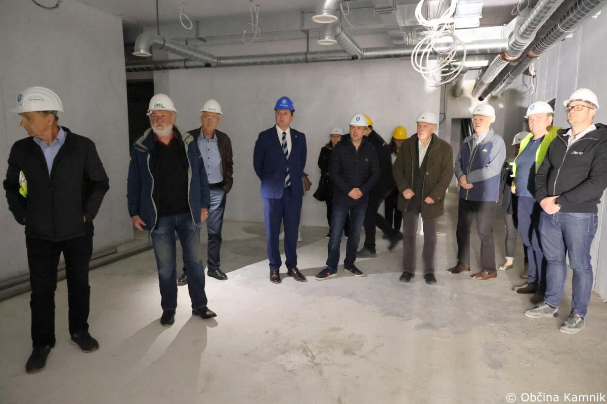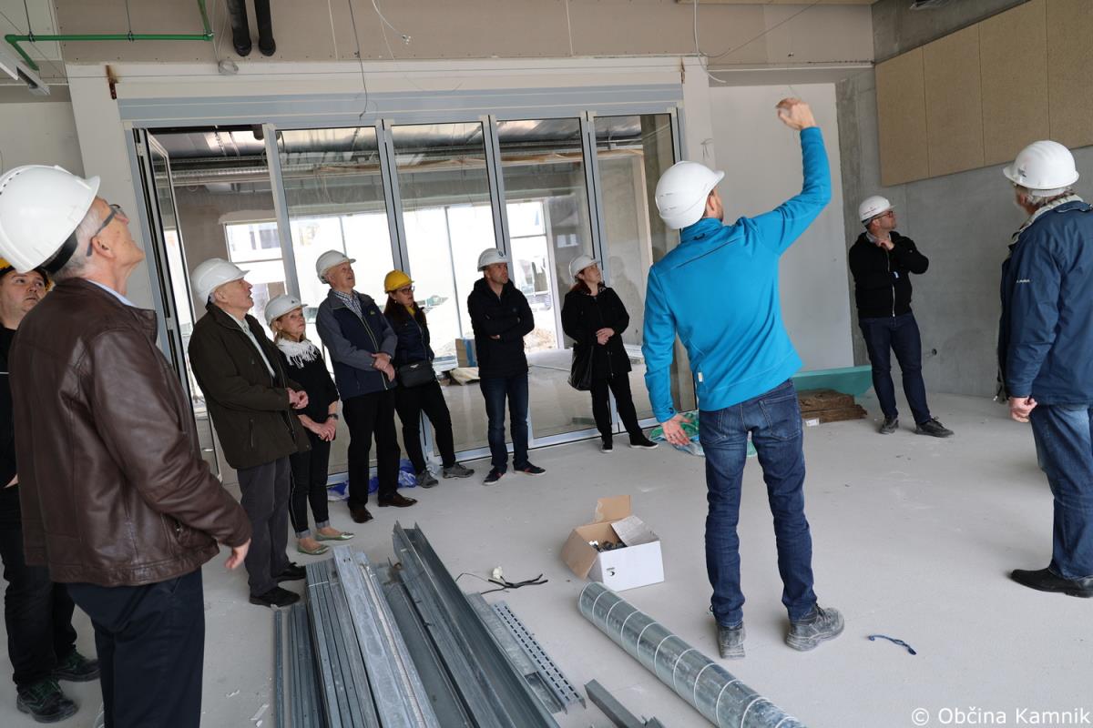 Skupina občinskih svetnikov si je v sredo, 19. aprila 2023, ogledala gradbišče; vodja gradbišča jim je predstavil objekt in opisal potek oz. napredovanje gradnje.