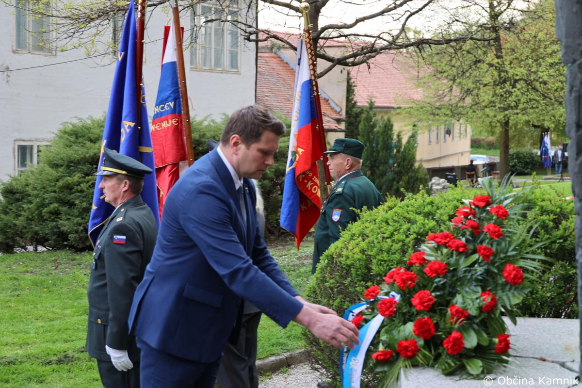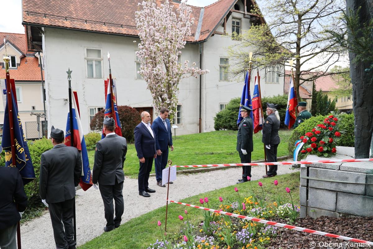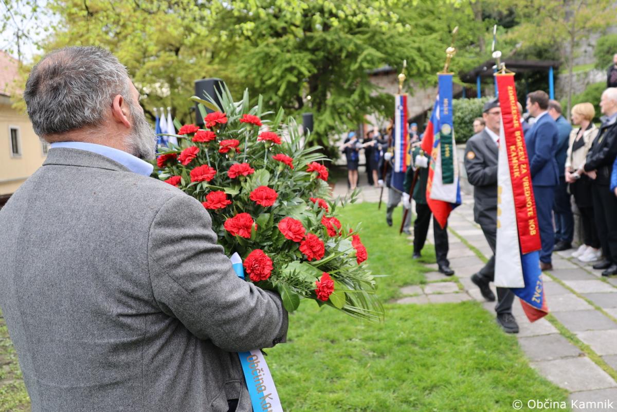 Župan Matej Slapar je ob tej priložnosti skupaj s slavnostnim govornikom, predsednikom Združenja borcev za vrednote NOB Kamnik Igorjem Kanižarjem k spomeniku Revolucije simbolno položil cvetje.
