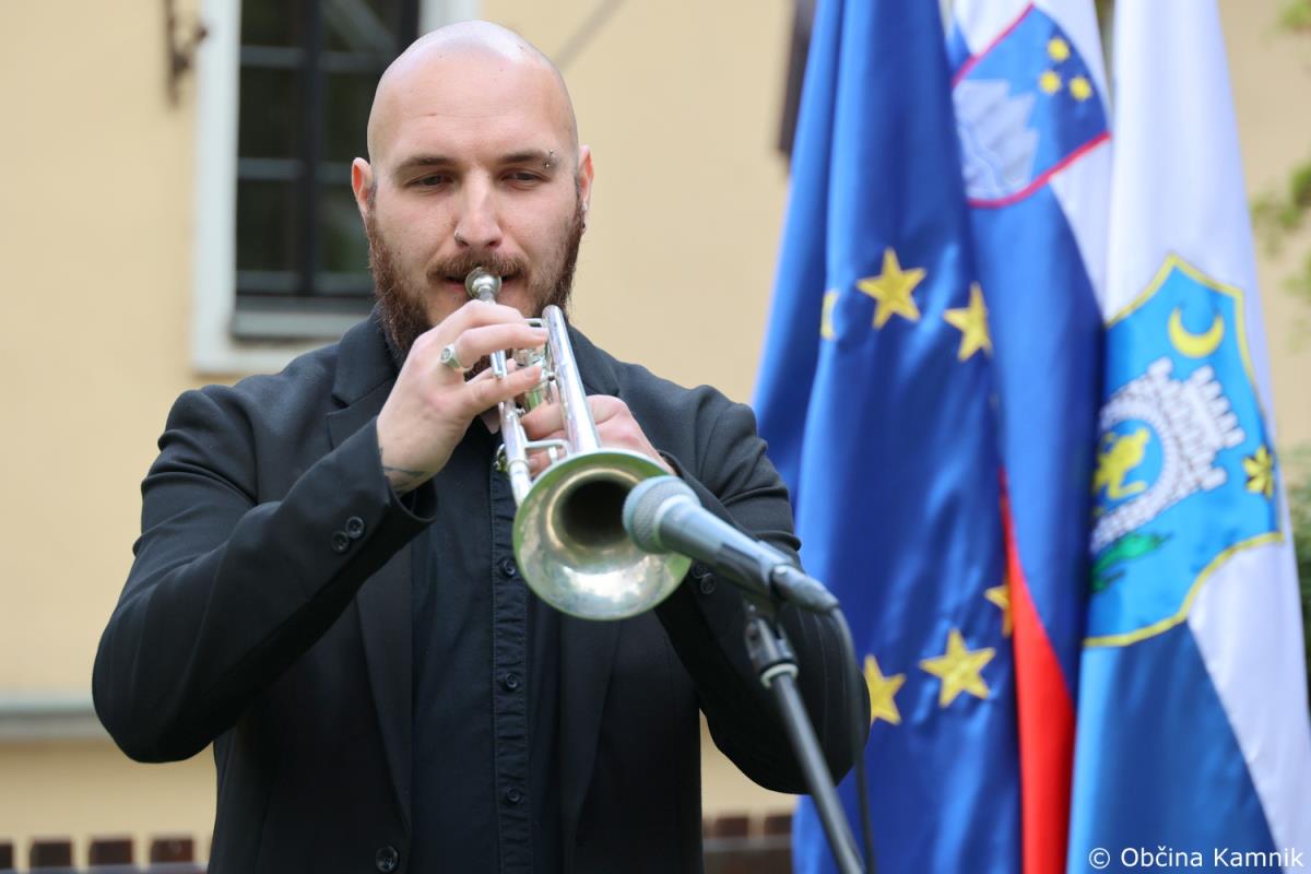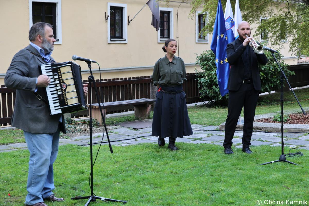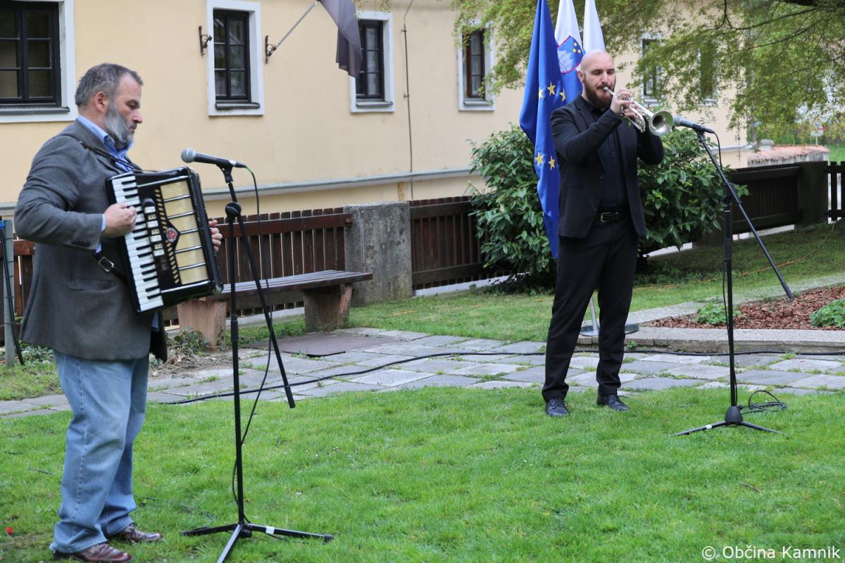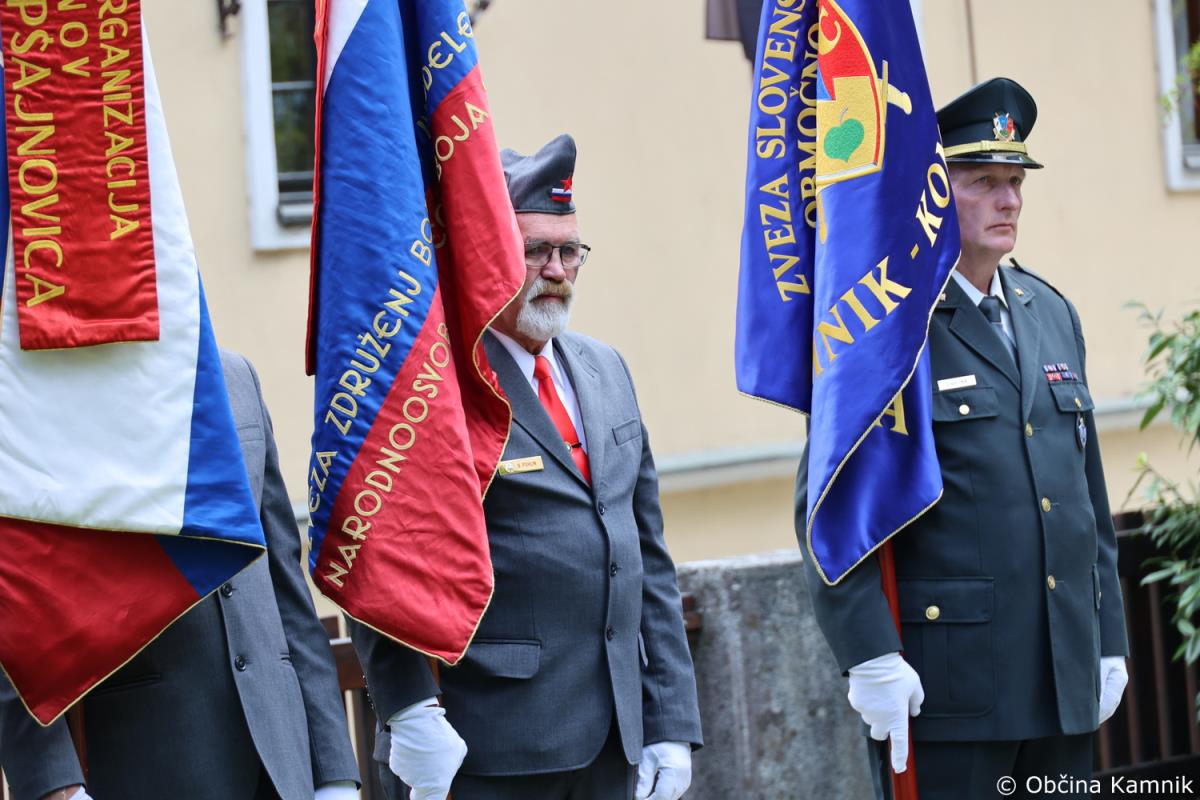 Župan Matej Slapar je ob tej priložnosti skupaj s slavnostnim govornikom, predsednikom Združenja borcev za vrednote NOB Kamnik Igorjem Kanižarjem k spomeniku Revolucije simbolno položil cvetje.