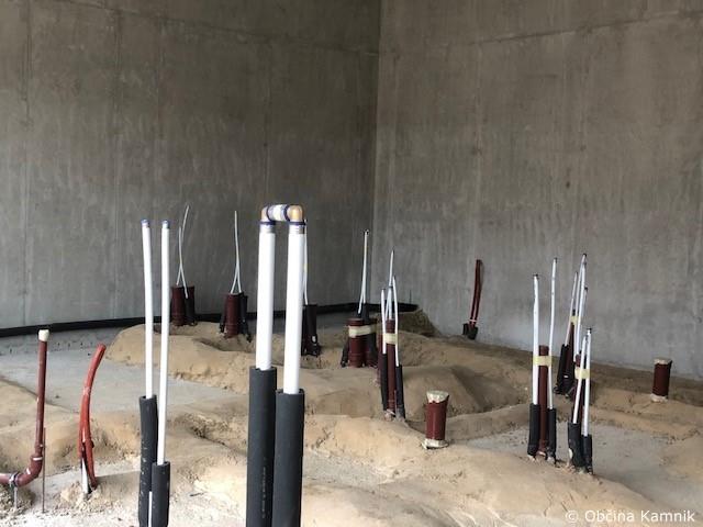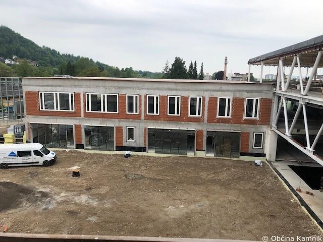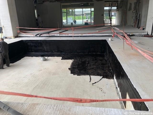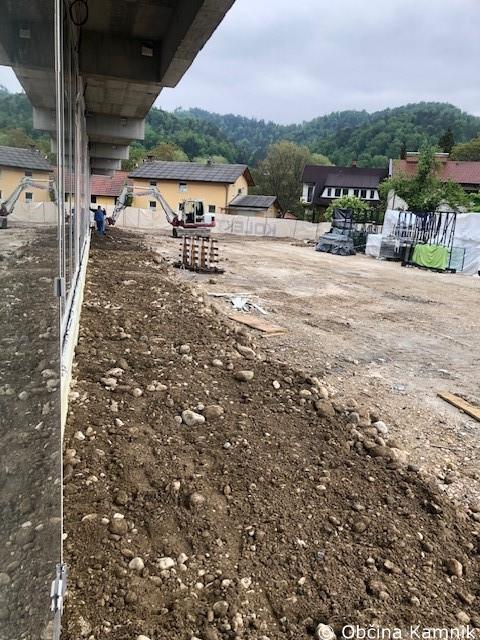 V dvoriščnem atriju so že izvedeni komunalni vodi (fekalna in meteorna kanalizacija), pripravlja – utrjuje se teren ob objektu, kjer bodo nameščeni gradbeni odri za izvedbo fasadnega ovoja.