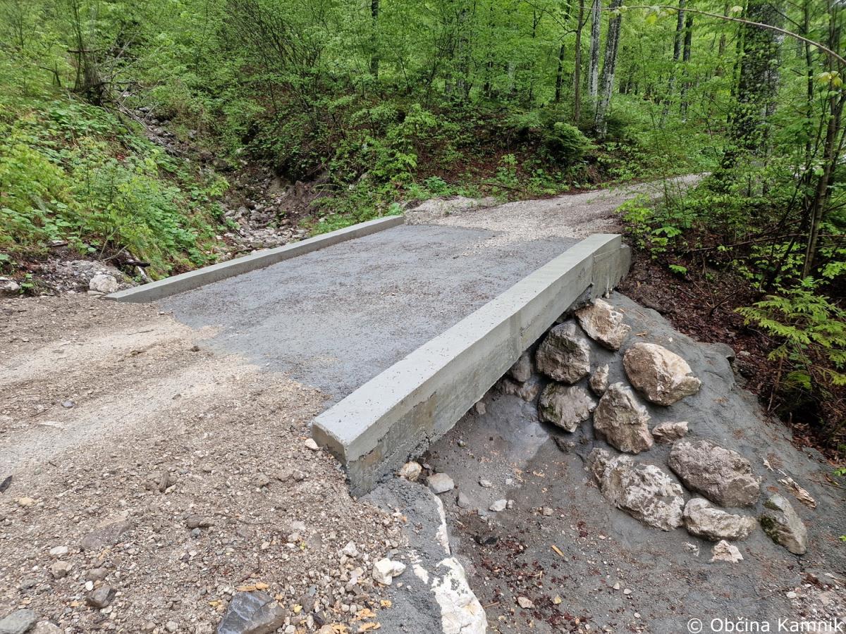 Na občinski cesti JP660727 Kamniška Bistrica, ki vodi do tovorne žičnice za Kokrsko sedlo, je uspešno zaključena sanacija vseh treh mostov.