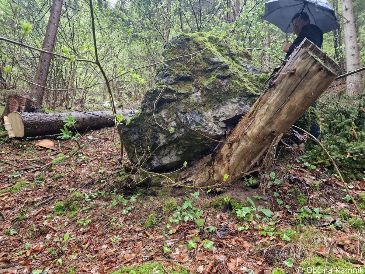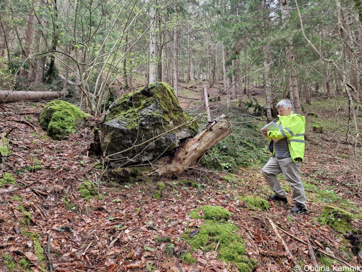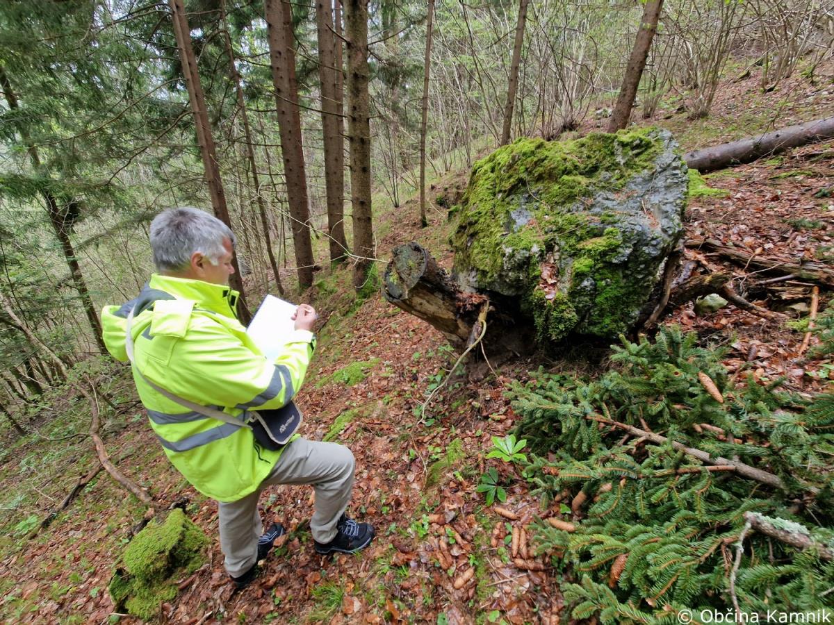 Na podlagi obvestila občana o nevarni skali v gozdu nad naseljem Krivčevo je bil izveden ogled strokovnjaka za skalne podore in geomehanika.