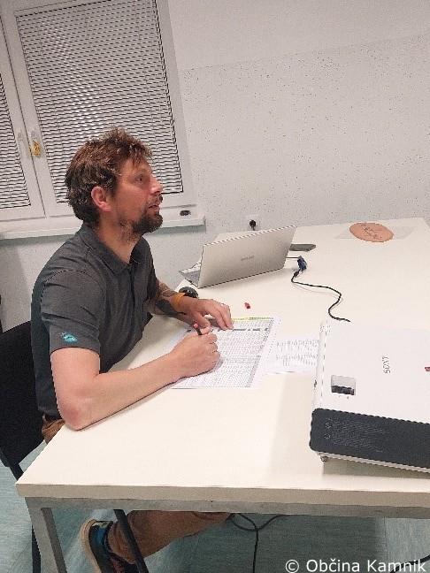 Klemen Klinar iz Razvojne agencije Zgornje Gorenjske je domačinom na kratko predstavil projekt in narečne posebnosti njihovih vasi.
