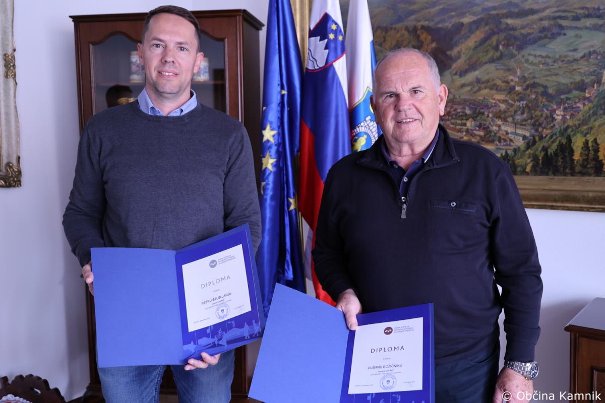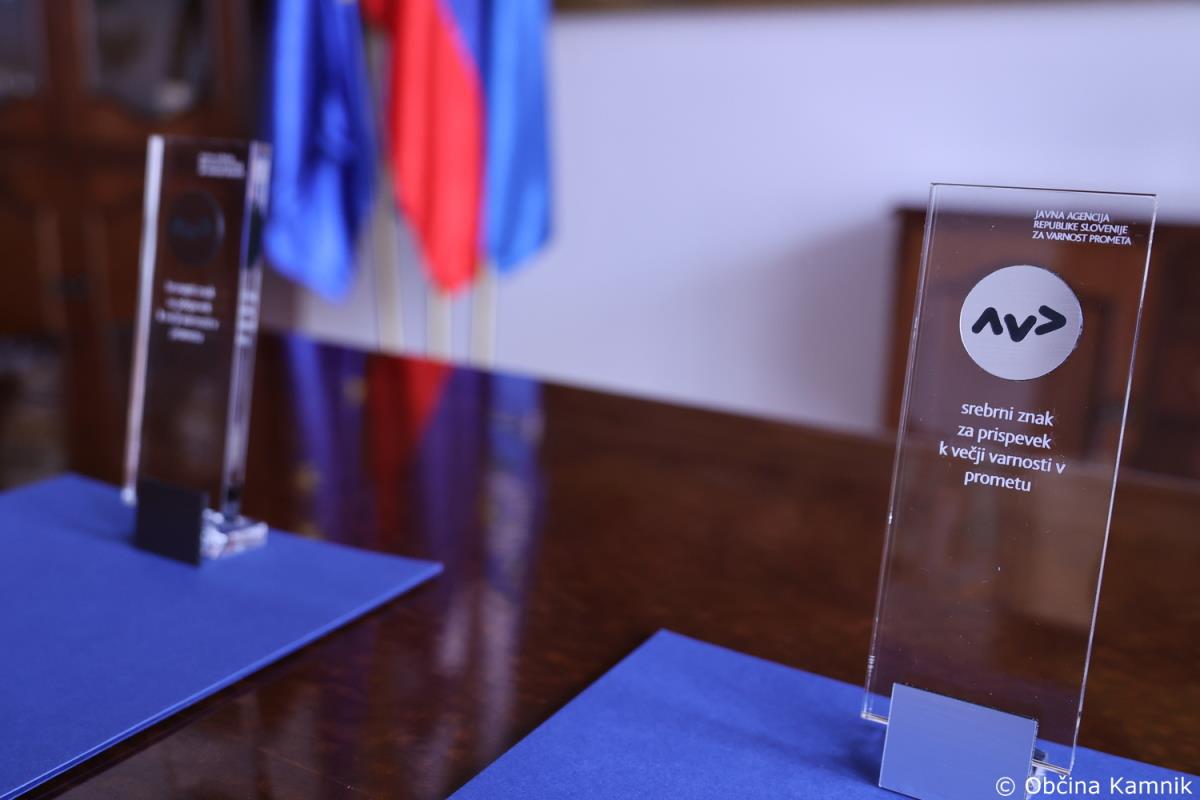 Župan Matej Slapar je popoldan skupaj s predstavniki Sveta za preventivo in vzgojo v cestnem prometu Občine Kamnik v Poročni dvorani občinske stavbe podelil srebrni in bronasti znak Javne agencije Republike Slovenije za varnost prometa. Znaka za prispevek k večji varnosti v prometu sta prejela Peter Štubljar in Dušan Božičnik.