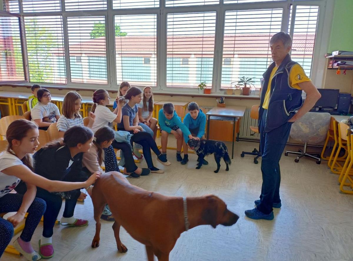 O šolanju psov je petošolcem veliko povedal kinolog Dušan Maček, predstavnik Kinološkega društva Duplica, ki je s seboj pripeljal kar dva psa.