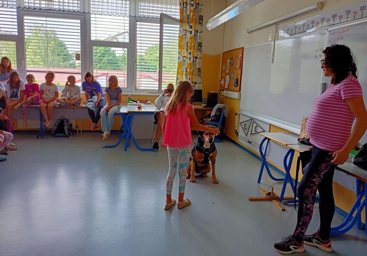 Tretješolce je obiskala gospa Miša Arko iz Kinološkega društva Duplica, s seboj pa je pripeljala tudi svojo psičko.