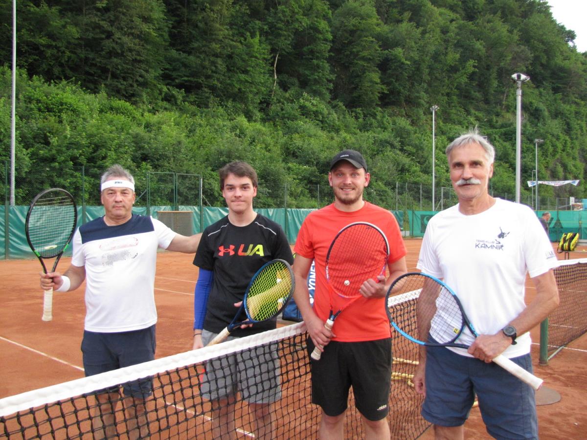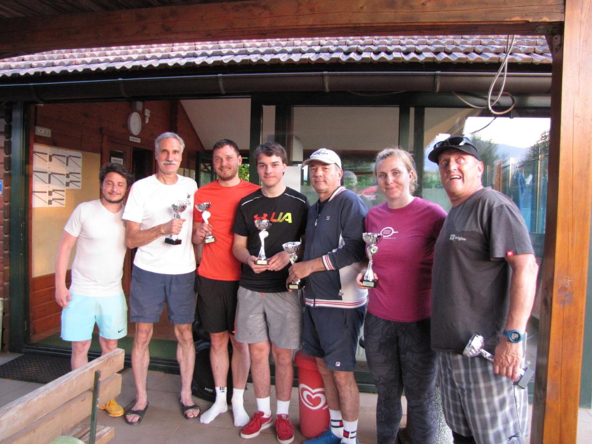 Po treh tekmah rednega dela se je v polfinale uvrstilo osem najboljših po seštevku točk (oziroma osvojenih gemov), žreb pa je še zadnjič določil, kdo bo igral s kom in proti komu. V finalni tekmi sta Andrej Schlegel in Nace Jeglič s 4/2 premagala dvojico Dare Kotnik in Urban Hribar, v tekmi za tretje mesto pa sta Katarina Turk in Janko Poljanšek s 4/3 premagala navezo Jure Kukovič in Žana Juvančič. Slednja se je kot novinka na naših tekmovanjih izkazala z zelo kvalitetnim tenisom, enako pa velja tudi za Manco Kirn, za katero je bil to sploh prvi teniški turnir v življenju. Bila je v igri za polfinale do zadnjega udarca, a ji na koncu ni uspelo. Na fotografiji so od leve proti desni: Patrick Popit (član UO TK Kamnik, ki je podeljeval pokale), Dare Kotnik, Urban Hribar, Nace Jeglič, Andrej Schlegel, Katarina Turk in Janko Poljanšek.