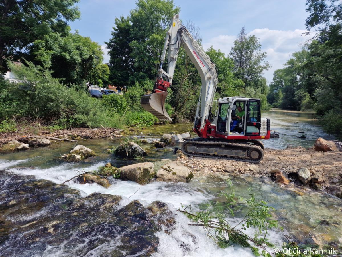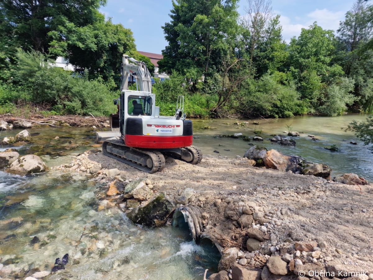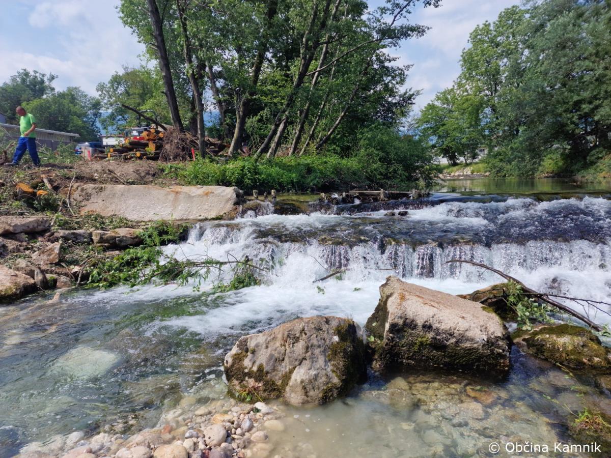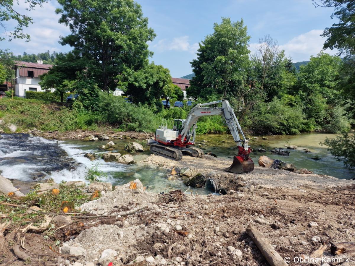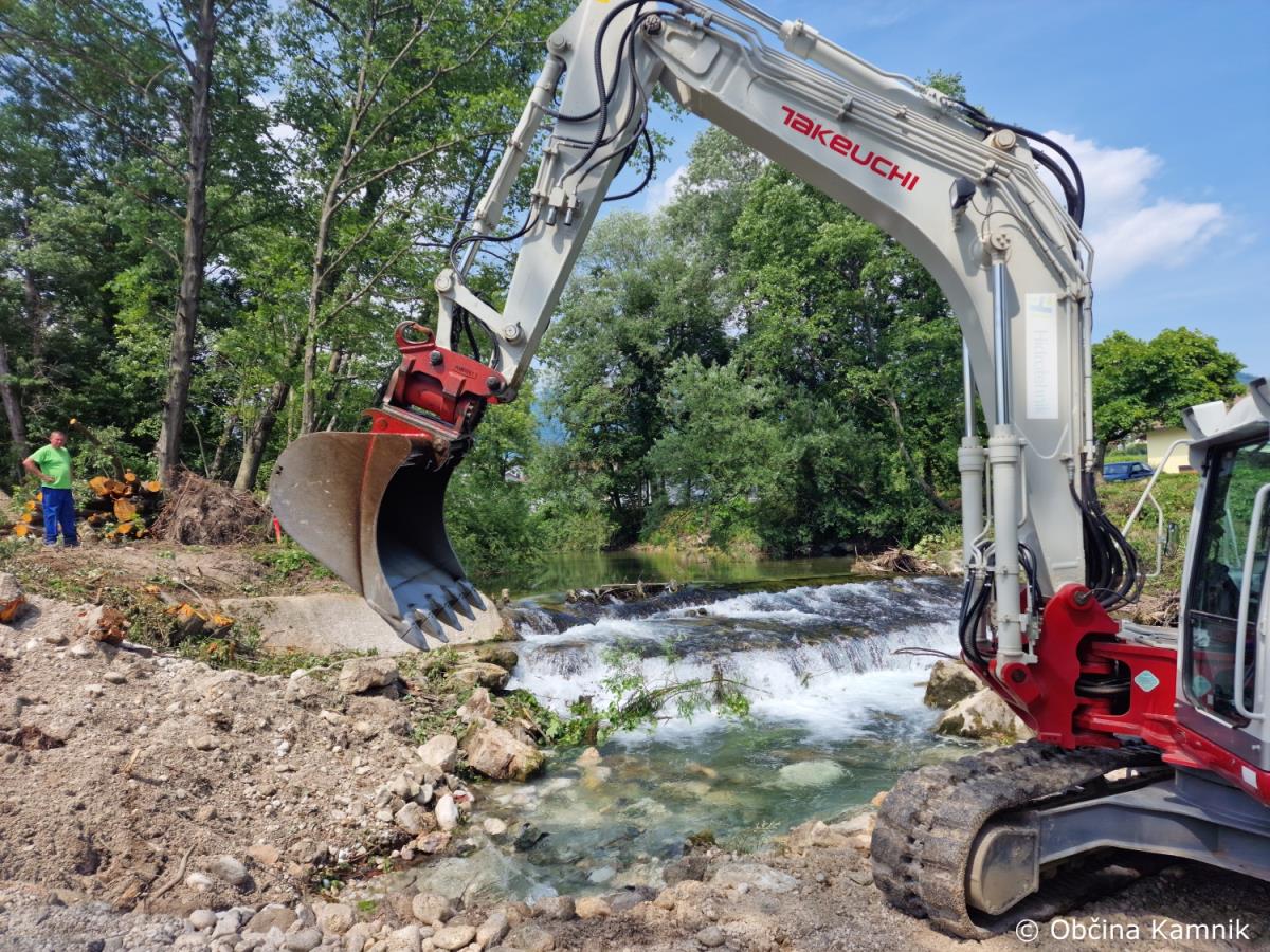 Sanacija pragu in ureditev brežin vodotoka Kamniške Bistrice se nadaljuje.