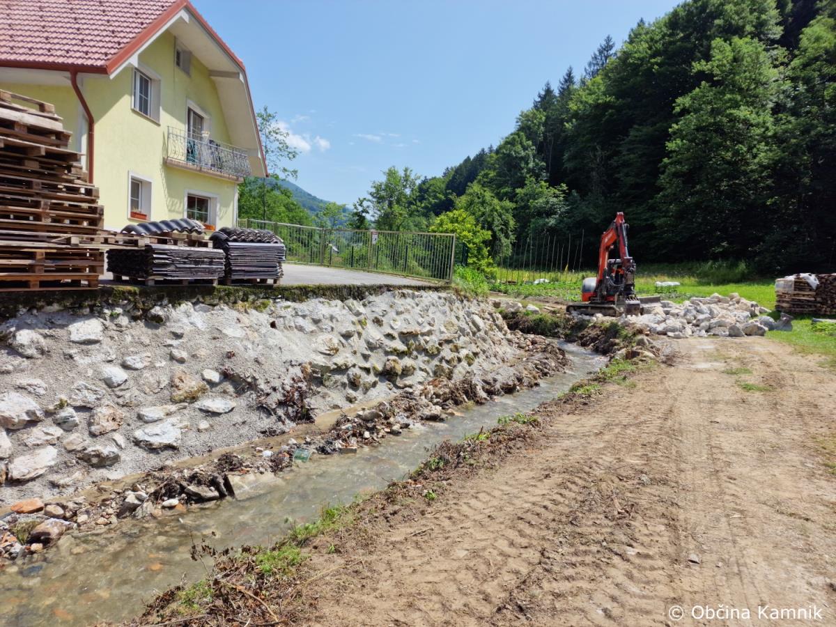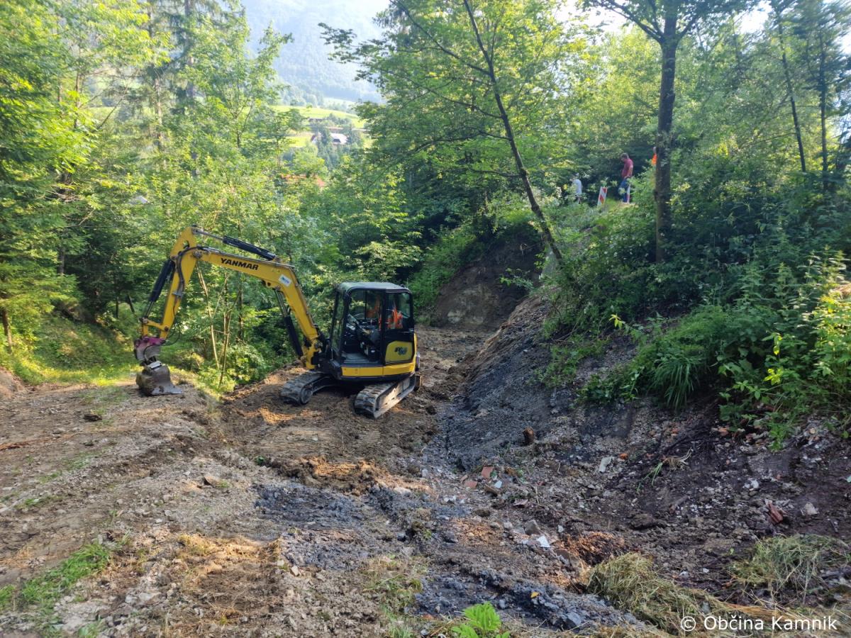 V sklopu sanacije bomo izvedli in uredili odvodnjavanja meteorne vode, hudourniške kanalete dolžine 15 metrov, sanacija prepusta in obnovo vozišča. Gradbena dela izvaja Komunalno podjetje Kamnik d.o.o., vrednost investicije pa znaša 29.500 evrov. Gradbeni nadzor nad sanacijo izvaja geomehanik Martin Vrabec.