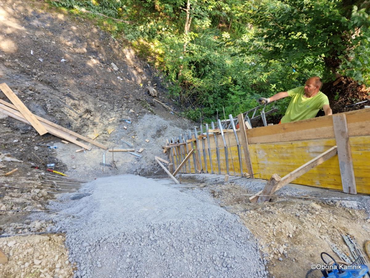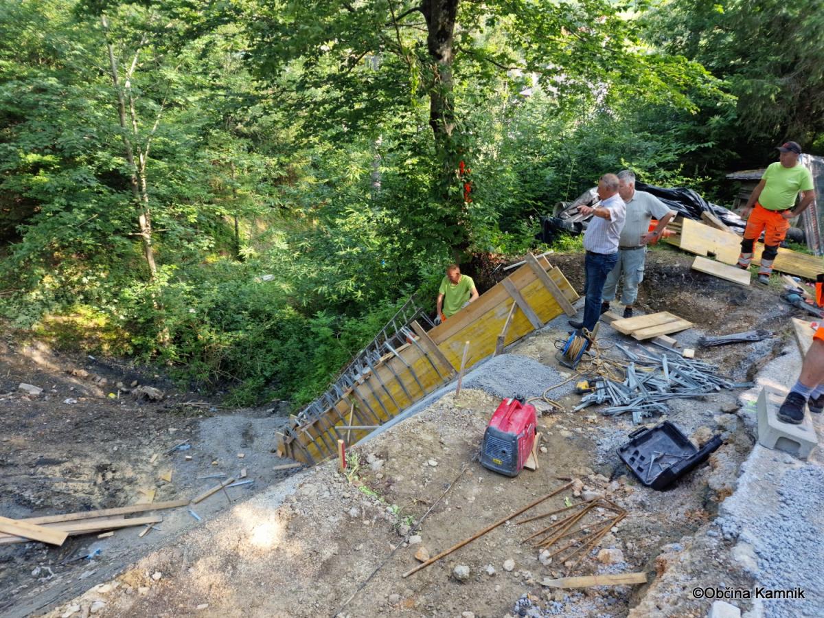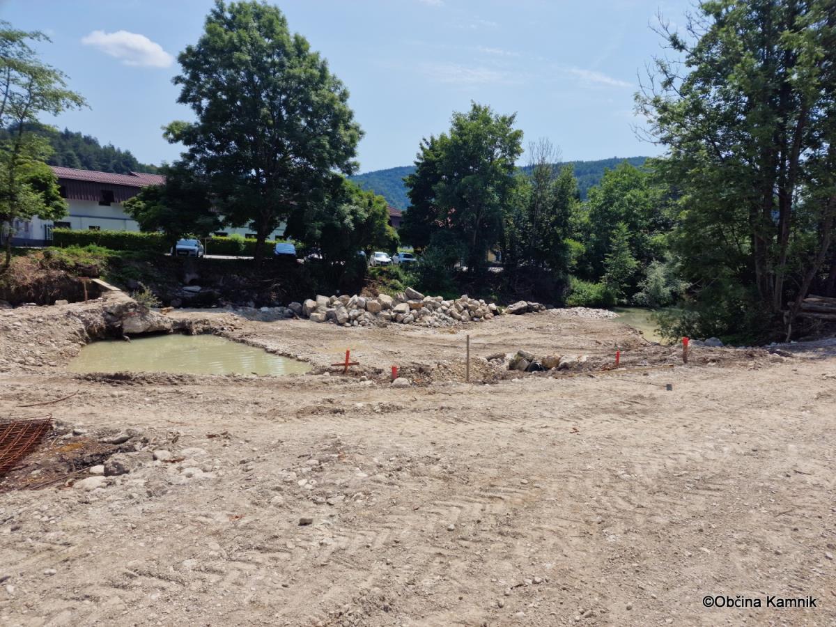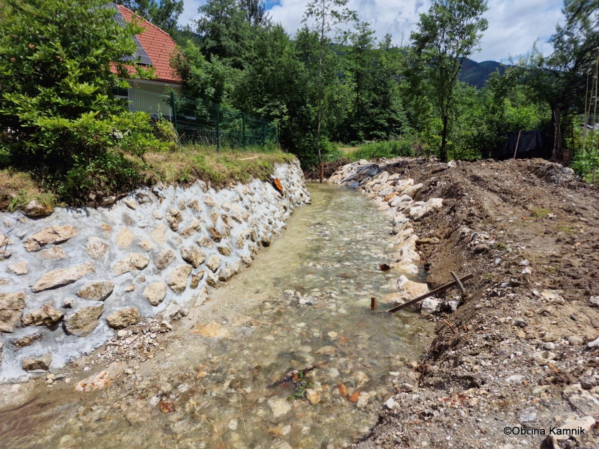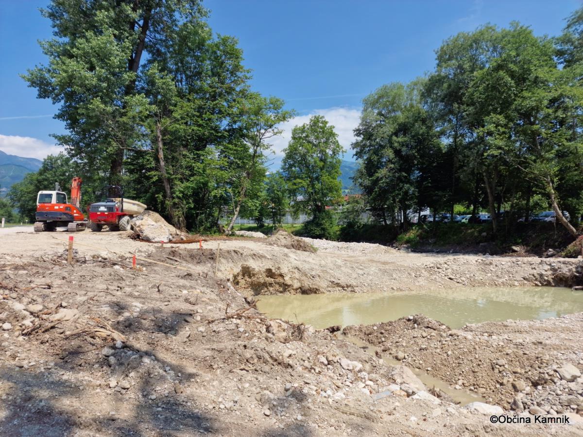 Kljub slabim vremenskim razmeram se sanacija pragu in ureditev brežin vodotoka Kamniške Bistrice nadaljuje. Dela izvaja pooblaščeni koncesionar za vode podjetje Hidrotehnik d.o.o. Vrednost sanacije, ki zajema izgradnjo pragu in ureditev brežine struge znaša 260.000 €. Investitor sanacije je Direkcija RS za vode.