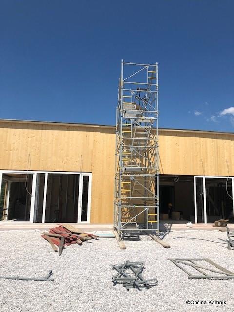 V zgornja etaži se izvaja fasadni obod - stene iz KLH plošč, objekt sedaj že dobiva dimenzijo končnega volumna. Na lameli B in A je bil izveden zaključni sloj strehe z ustreznim odvodnjavanjem (pluvia). Izvedeno je tudi servisno stopnišče za dostop na streho, kjer se bodo začela izvajati inštalacijska dela (vse naprave za prezračevanje objekta na strehi).