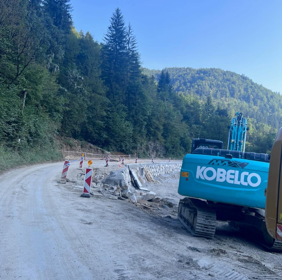 Na terenu so vse razpoložljive ekipe, ki intenzivno izvajajo gradbena dela, da bo cesta kar se da v najkrajšem možnem času prevozna za ves promet.