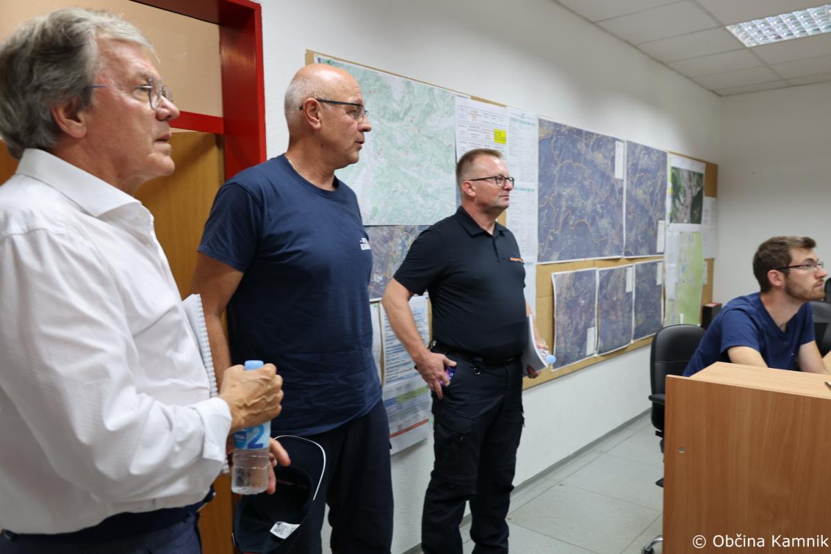 Pred obiskom si je državni sekretar za obrambne zadeve ter zadeve varstva pred naravnimi in drugimi nesrečami dr. Anton Grizold skupaj z direktorjem Uprave za zaščito in reševanje Leonom Behinom ogledal prostore Občinskega štaba civilne zaščite Kamnik in dežurno sobo Prostovoljnega gasilskega društva Kamnik. Državni sekretar je pohvalil odziv občine Kamnik na nesrečo in se zahvalil županu ter vsem vključenim v sistem zaščite, reševanje in pomoči na našem območju. Pohvalil je usklajeno delovanje vseh služb v sistemu, da pa je bila intervencija uspešno vodena, pa gre zasluga tudi dolgoletnim pridobljenim izkušnjam na področju vodenja večjih intervencij.