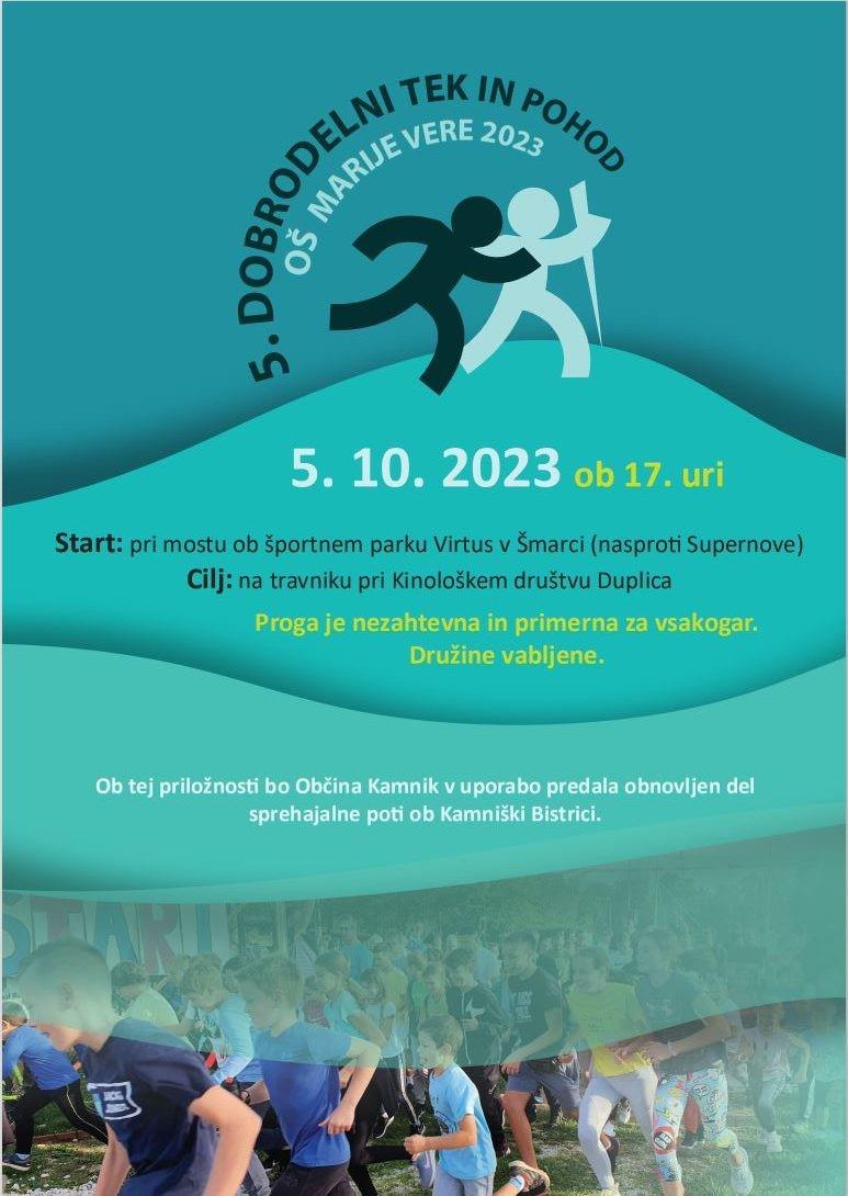 Z velikim veseljem vas ponovno vabimo na že peto ponovitev teka in pohoda za dobri namen. Letos bo Občina Kamnik ob tej priložnosti v uporabo predala obnovljeno sprehajalno pot ob Kamniški Bistrici, ki je bila v poplavah uničena.
