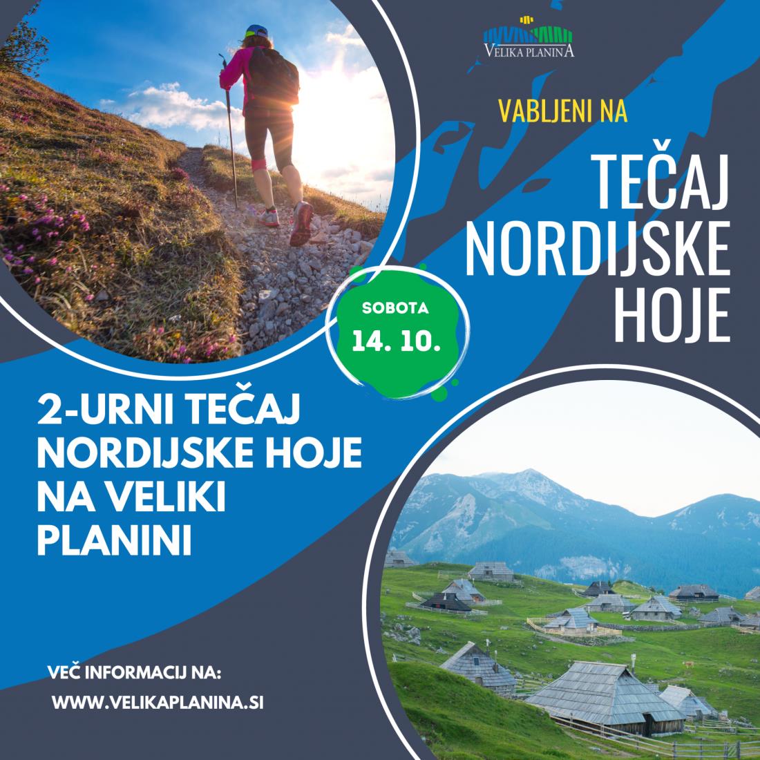 Nordijska hoja je ena najbolj učinkovitih in varnih telesnih aktivnosti in idealna oblika rekreacije, pri kateri ohranjamo vzdržljivost in telesno kondicijo. Je enostavna, prijetna in primerna za vse starostne skupine. V soboto, 14. 10. 2023, se bomo z inštruktorico nordijske hoje podali na 2-urni tečaj po Veliki planini. Zbrali se bomo ob 10:15 pri zgornji postaji nihalke. Gre za prvi tovrstni dogodek na Veliki planini, zato smo pripravili promocijsko ceno! Redna cena tečaja je 40,00/osebo – tokrat bo cena 10,00€/osebo – vključen pa je 2-urni tečaj, izposoja palic za nordijsko hojo in brezplačna sladica v gostilni Zeleni rob! Na naši poti bomo premagali okoli 200 m višinske razlike, zato je potrebno nekaj kondicijske pripravljenosti.