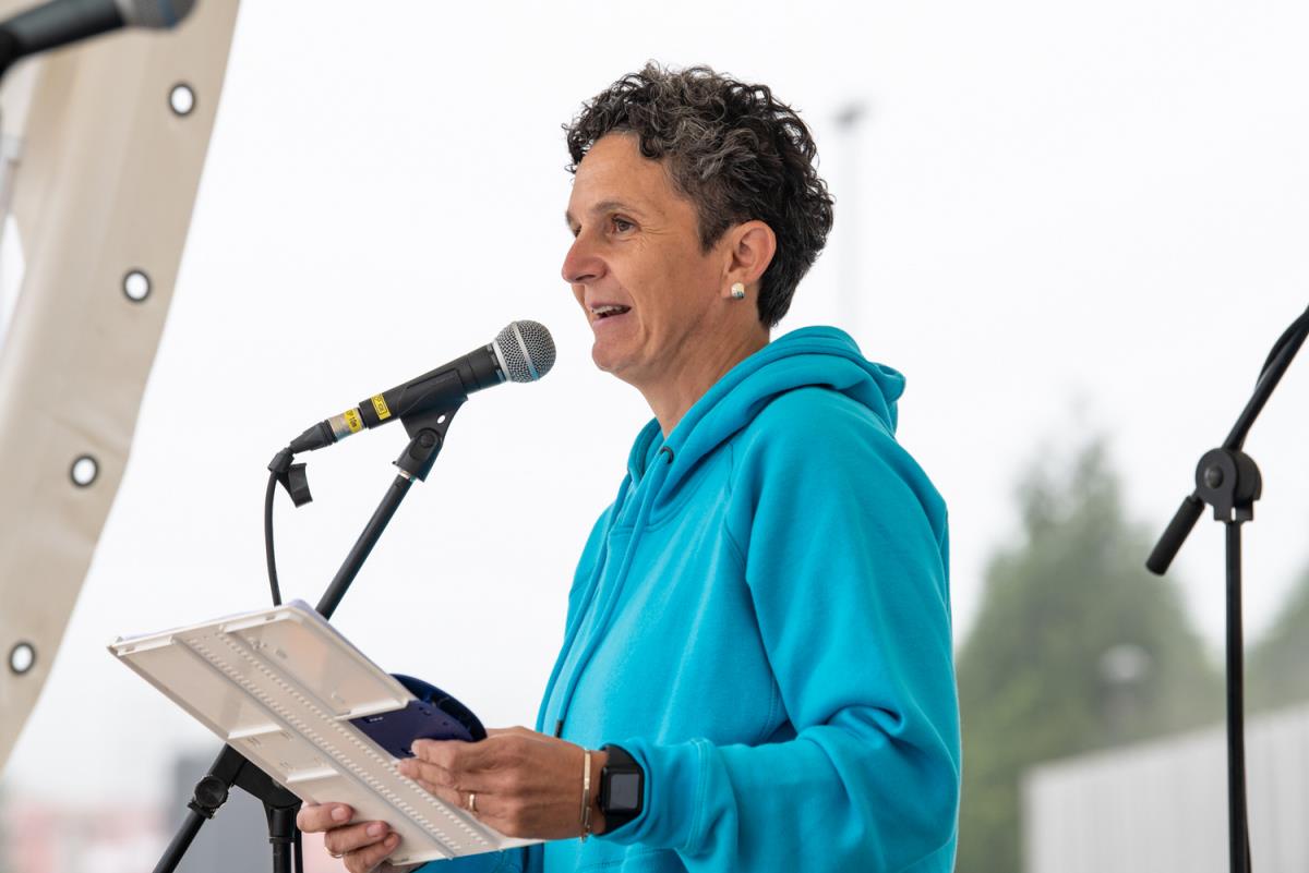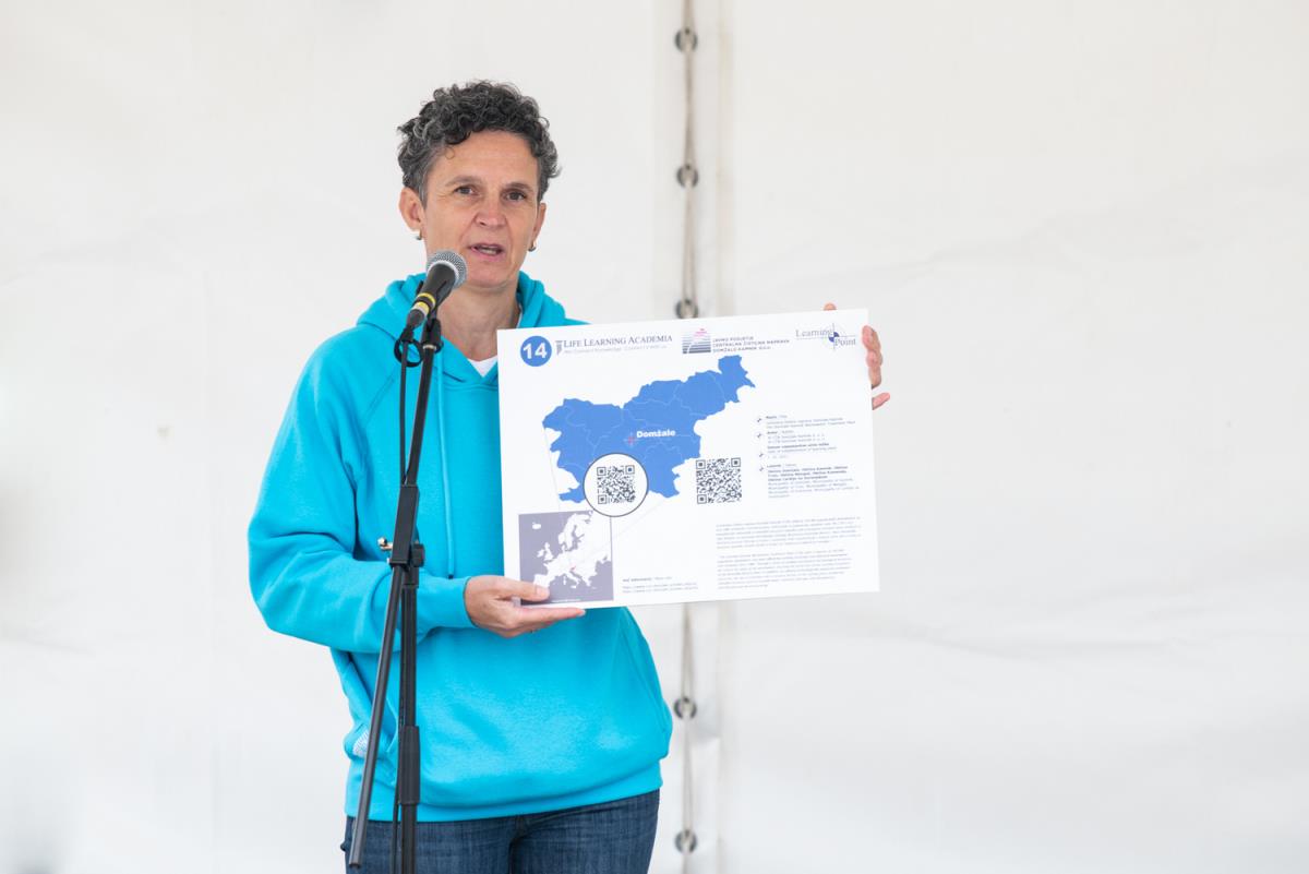 Dr. Levstek je v nadaljevanju povedala, da se je z dnevom odprtih vrat CČN pridružila učeči Sloveniji in pokazala učno tablo, ki bo nameščena na vhodu in ob sprehajalni poti ob čistilni napravi. Tabla predstavlja učno točko za obiskovalce, s katere bodo zainteresirani lahko razbrali razlago, s čim se čistilna naprava ukvarja, QR koda pa jih bo vodila na spletno stran CČN, kjer lahko svoje znanje o čistilni napravi še poglobijo.