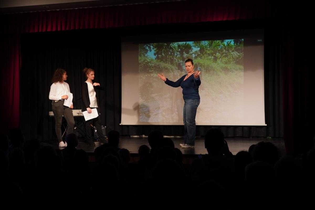Povezovalki sta ugotavljali, da je Tuhinj skoraj že misijonsko središče Slovenije, saj sta na odru gostili že tretjo domačo misijonarko - srednješolko Lucijo Bajde, ki se je letos poleti s sovrstniki za nekaj tednov odpravila v Kazahstan. Odgovorila je na nekaj vprašanj ter povabila na predstavitev njihove misijonske odprave, ki bo v sredo, 13. decembra 2023, prav tako v dvorani na Lazah.
