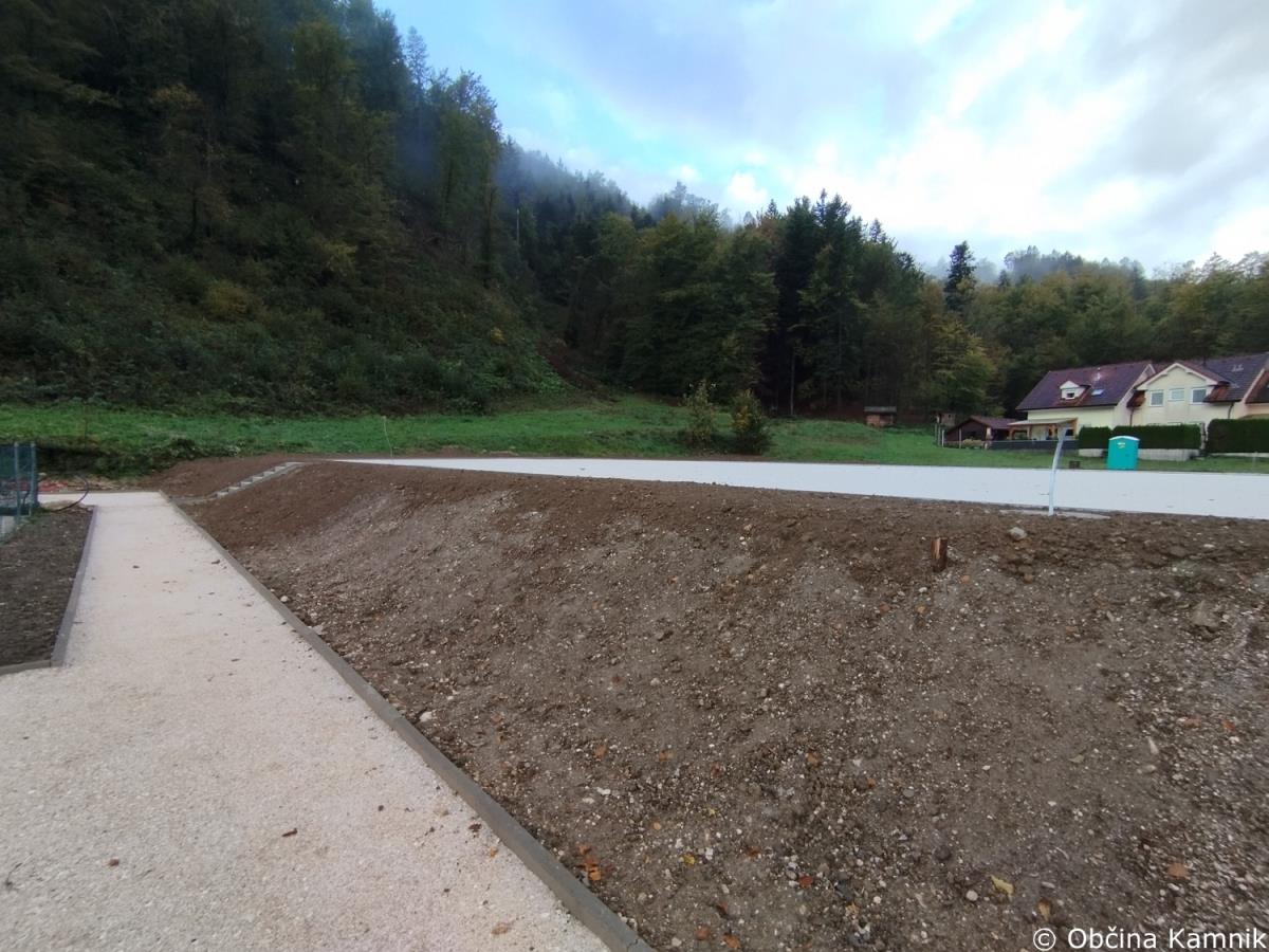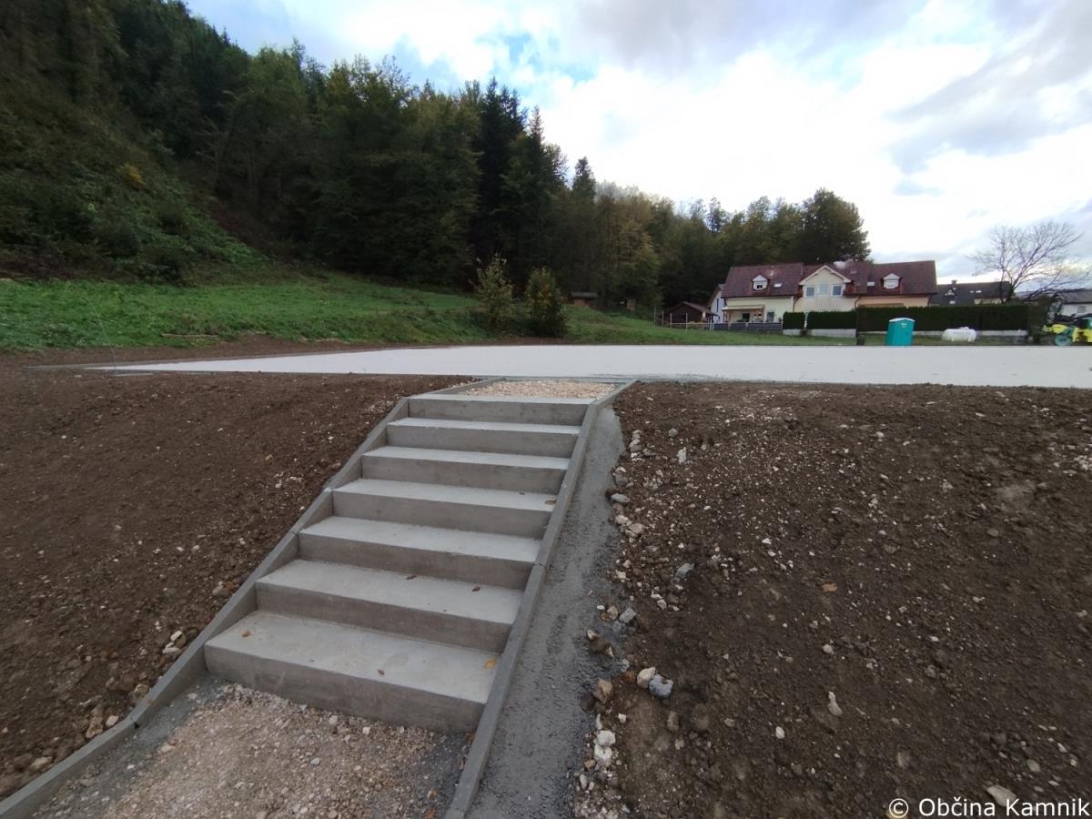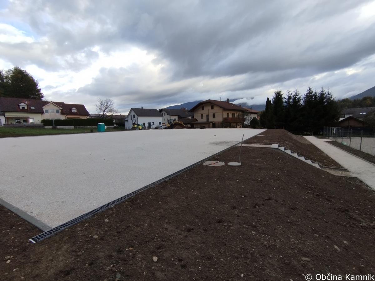 Izvedeni so vsi temelji zaščitne ograje, vgrajeno je elektro kanalizacijsko omrežje za razsvetljavo igrišča, izveden sistem za odvodnjavanje padavinskih vod vključno s kanaletami, ki omejujejo igrišče na vzhodni in zahodni strani. Na vzhodni strani igrišče s peš potjo povezujejo betonske stopnice. V tem tednu se načrtuje izvedba asfaltiranja igrišča in dostopne poti, montaža opreme igrišča in urejanje zunanje okolice.
