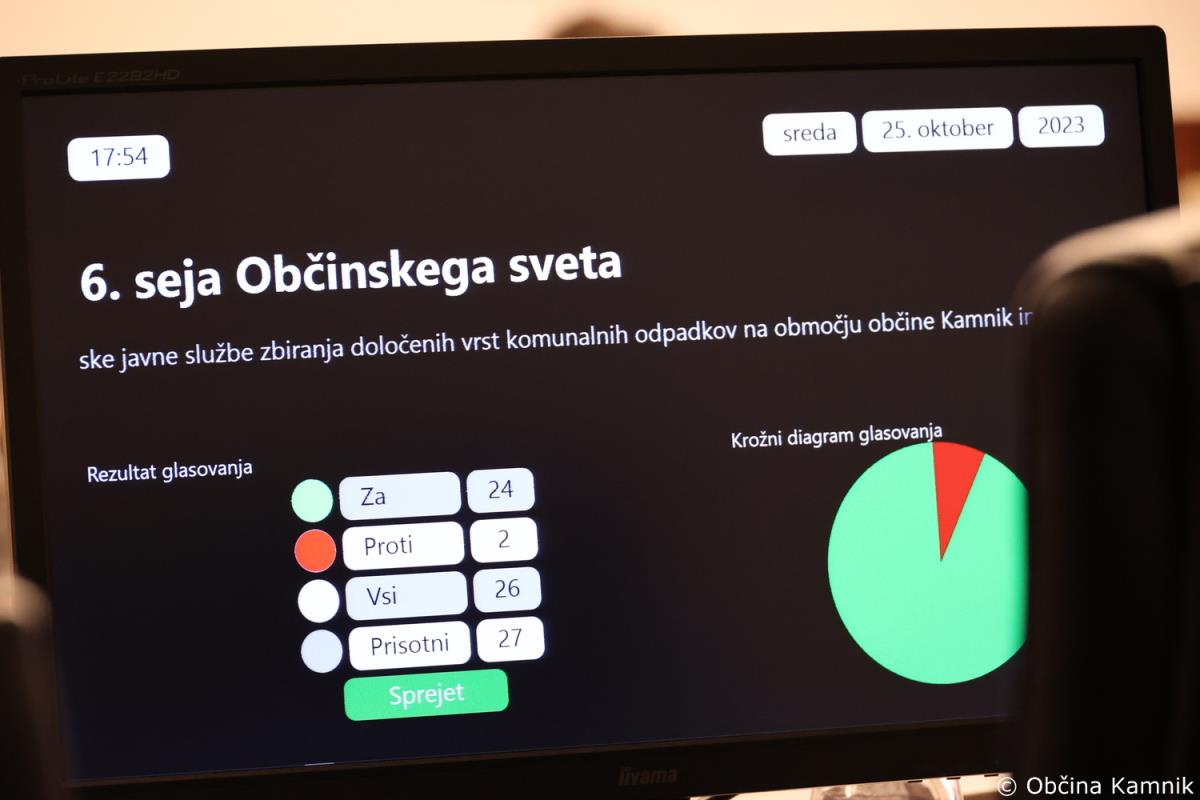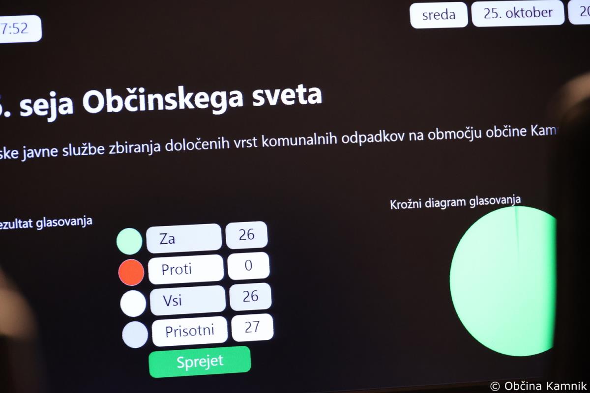 Popoldan je v Sejni dvorani Občine Kamnik potekala 6. redna seja Občinskega sveta Občine Kamnik, na kateri so svetnice in svetniki med drugim obravnavali Predlog Odloka o podlagah za odmero komunalnega prispevka za obstoječo komunalno opremo za območje občine Kamnik v drugi obravnavi, predloga Odloka o izvajanju obvezne občinske gospodarske javne službe zbiranja določenih vrst komunalnih odpadkov na območju občine Kamnik in občine Komenda in Odloka o koncesiji za izvajanje gospodarske javne službe zbiranja določenih vrst komunalnih odpadkov na območju občine Kamnik in občine Komenda v prvi obravnavi, dva prostorska akta ter se seznanili s potekom gradnje nove Osnovne šole Frana Albrehta Kamnik. Sejo Občinskega sveta Občine Kamnik je vodil podžupan Uroš Pirc.