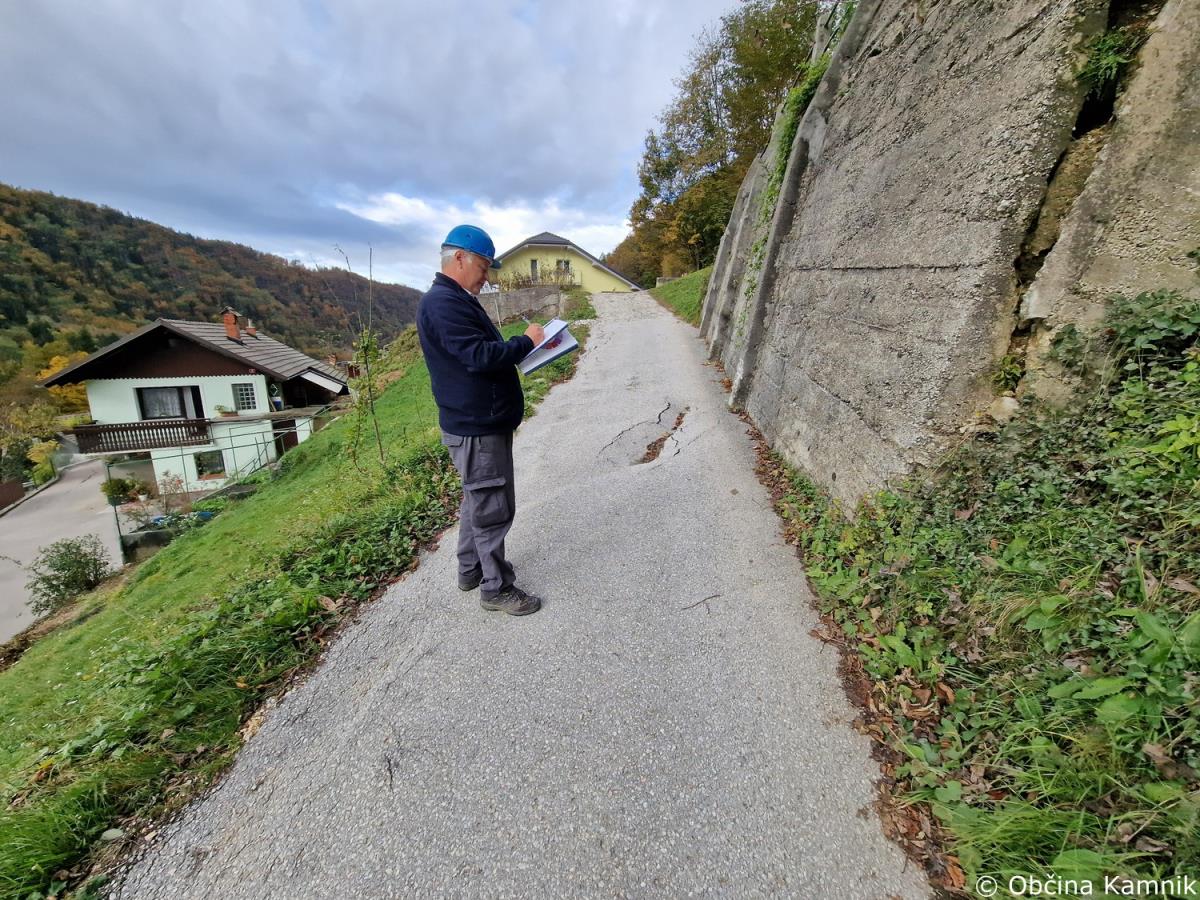Strokovnjak za plazove, geomehanik Martin Vrabec si je skupaj s predstavnikom Občine ogledal zemeljski plaz. Na podlagi ogleda bo sledila izpolnitev potrebnih obrazcev za vnos zemeljskega plazu v državne evidence AJDA in E-plaz.