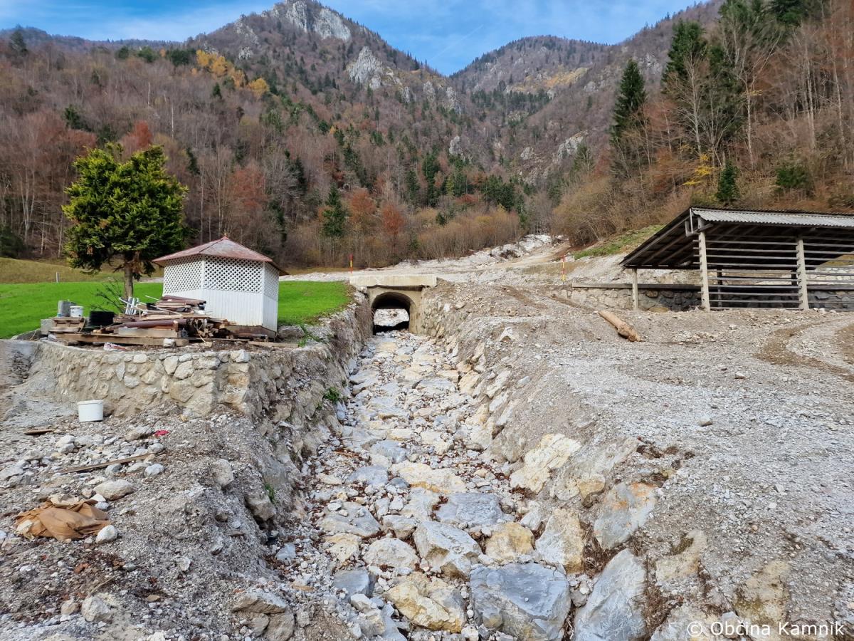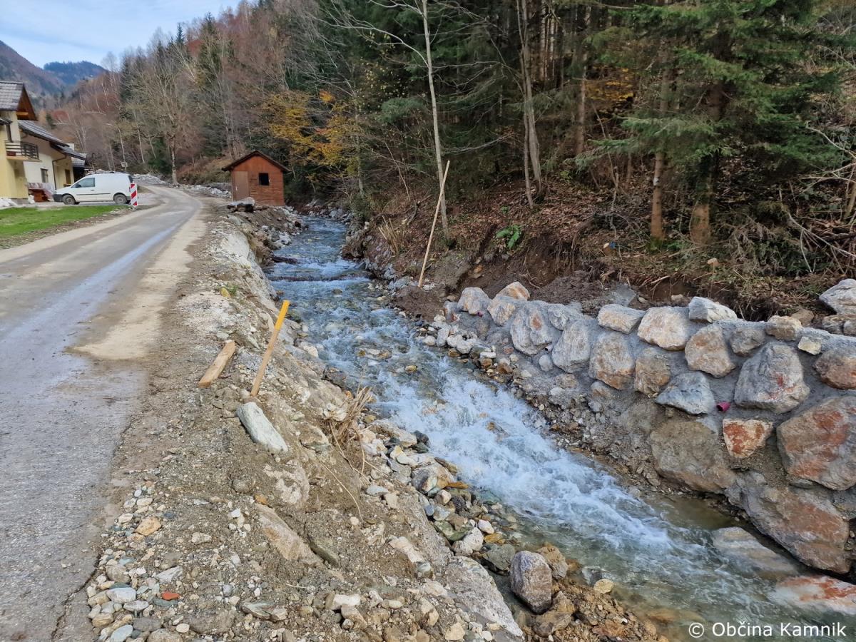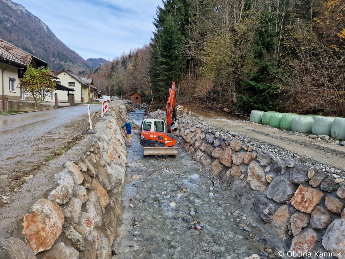 Na območju Občine Kamnik poteka več delovišč sanacijskih obnov vodotokov in hudournikov. Direkcija RS za vode je na podlagi izdelanega plana sanacije za izvedbo ureditev vodotokov po poplavah, skupaj s podjetje Hidrotehnik d. o. o., ter podizvajalci začelo z intervencijami in sanacijami takoj po poplavah.