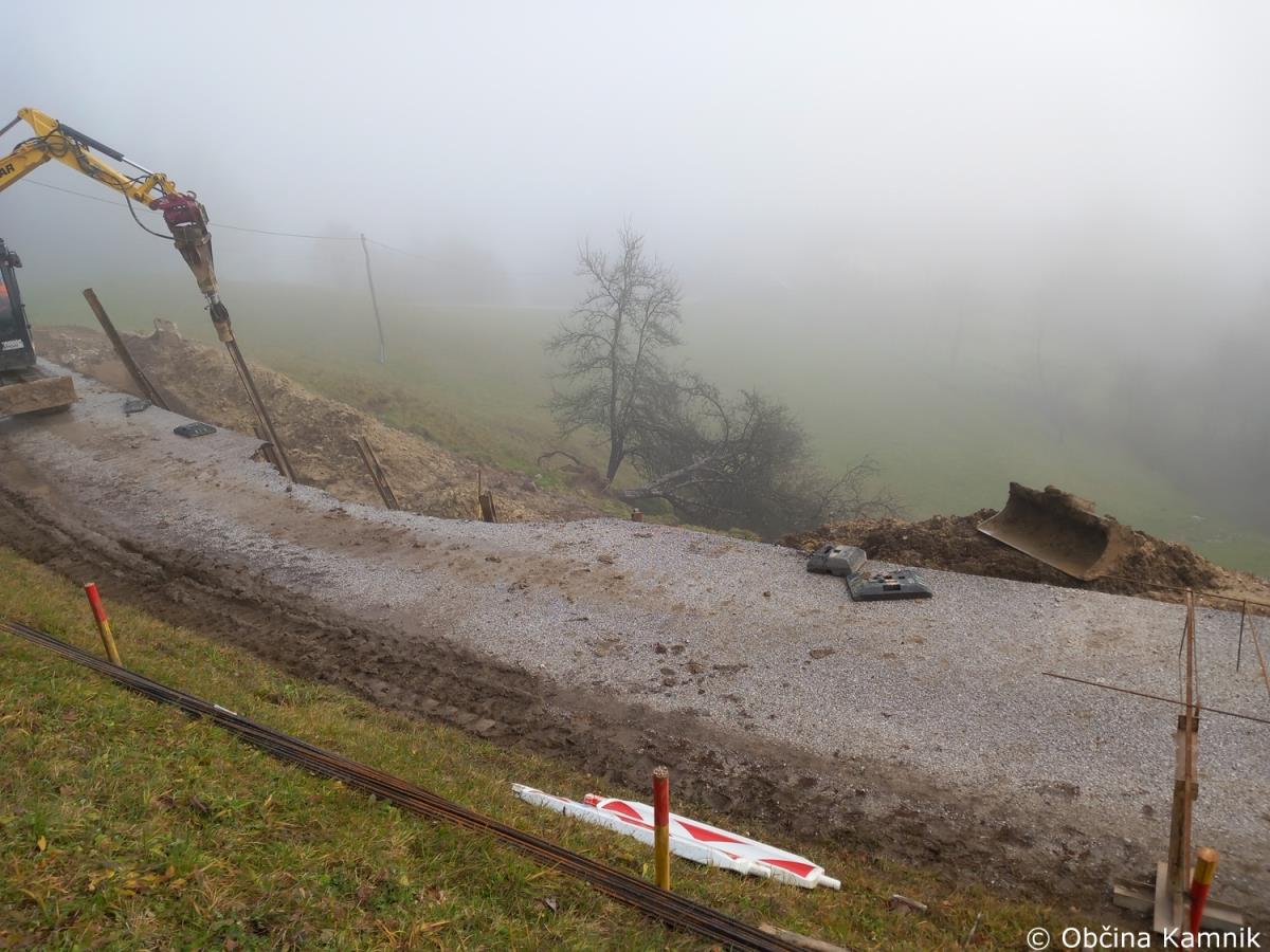 Izvajalec del, Gradbeništvo Prestor, d. o. o., je v preteklem tednu pričel z izvajanjem del za sanacijo usada pod javno potjo na območju naselja Hrib pri Kamniku (JP 661105).
