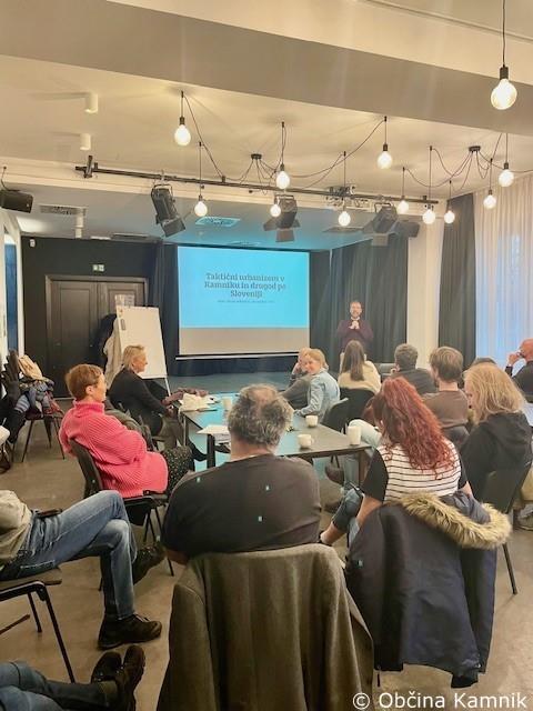 Prejšnji teden smo izvedli delavnico za deležnike in dogodek za ozaveščanje o pomenu taktičnega urbanizma v urbanem okolju. Na dogodku so sodelovali tudi predstavniki Inštituta za politike prostora (IPoP), ki je v projekt vključen kot strokovna institucija in zagotavlja znanje s področja taktičnega urbanizma ter ustvarjanja prostora. Po uvodnih predstavitvah projekta, smo nadaljevali s predstavitvijo dobrih praks, ki smo jih v Kamniku v preteklih letih že izvedli. Skupina Štajn je s svojimi začasnimi akcijami arhitekturnih inštalacij v mestu že večkrat preverila možne rešitve za težave v mestnem središču.