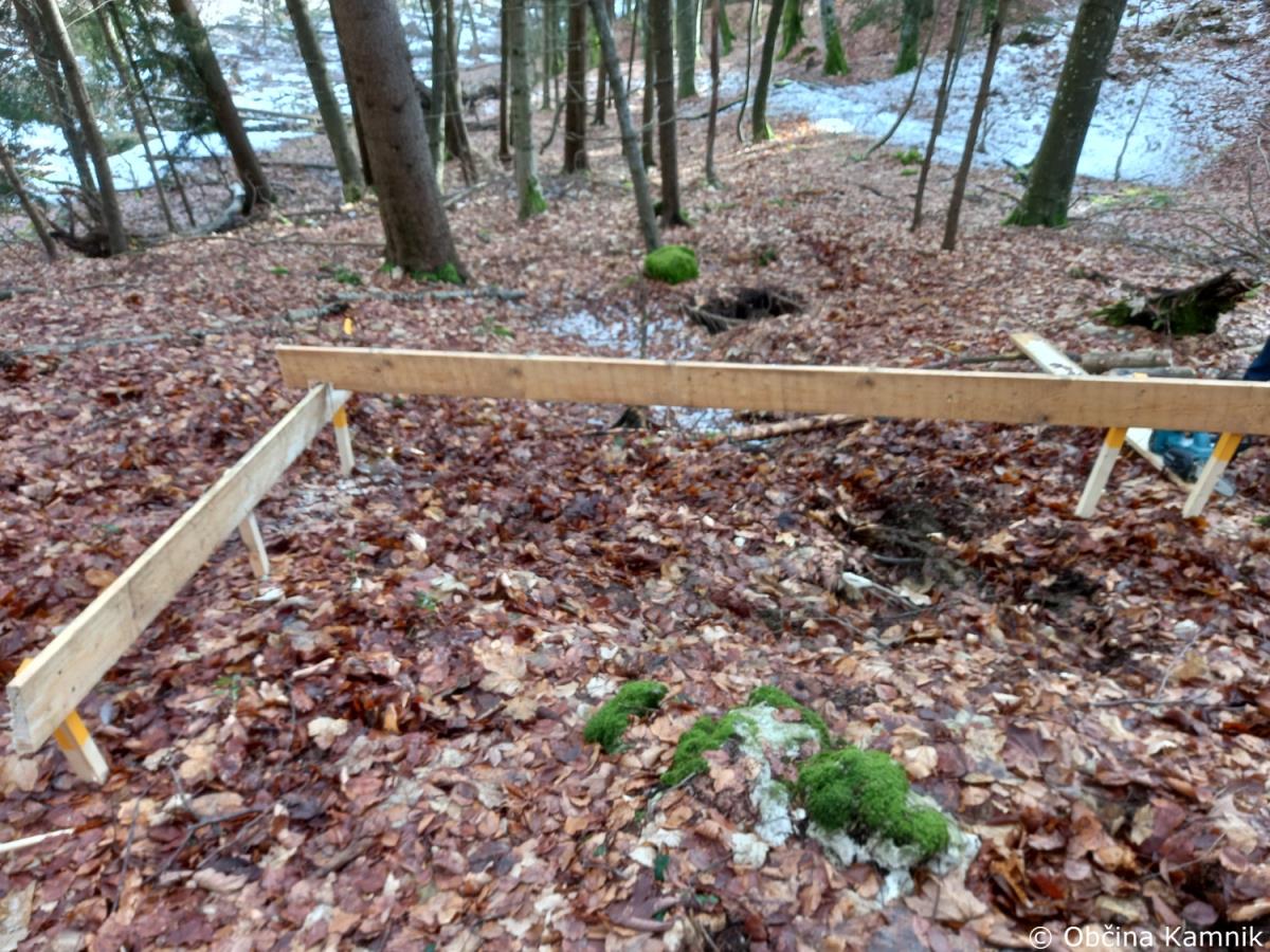 S postavitvijo debel ob začasnem mostu smo poskrbeli za lažje prečkanje ter za zaščito pred zdrsom