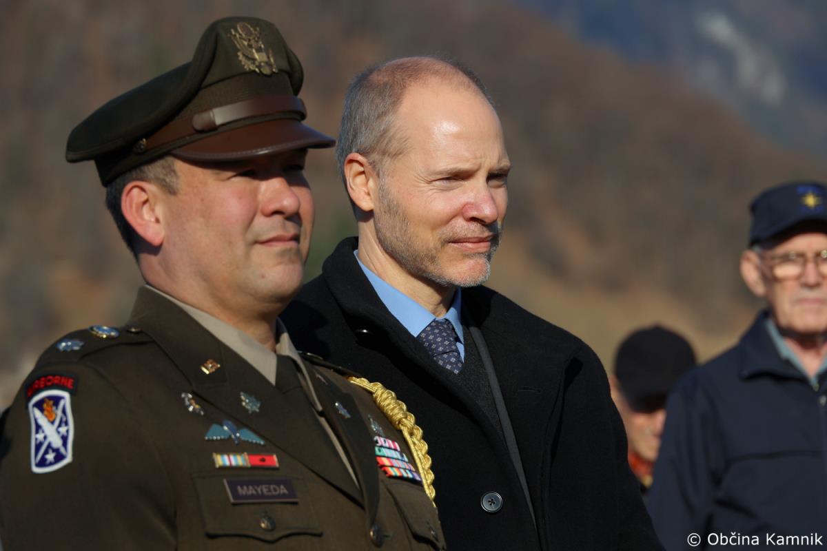Včeraj, v sredo, 27. decembra 2023, je Združenje borcev za vrednote NOB Kamnik in Tuhinj pripravilo spominsko slovesnost pri spomeniku 192 padlim borcem v Zgornjem Tuhinju, med katerimi sta bila tudi vodja ameriške vojne misije kapetan Charles Fisher in dr. Peter Držaj, ki sta 26. decembra leta 1944 padla v vasi Češnjice. Dogodka se je v imenu Občine Kamnik udeležila podžupanja Romana Učakar skupaj s slavnostnim govornikom, ministrom za obrambo Republike Slovenije Marjanom Šarcem, predsednikom Združenje borcev za vrednote NOB Kamnik Igorjem Kanižarjem ter predstavnikoma Veleposlaništva Združenih držav Amerike Gregoryem Meierjem ter Danielom Mayedom. Zbranim so se pridružili še ostali predsedniki in predstavniki veteranskih in domoljubnih organizacij Občine Kamnik.