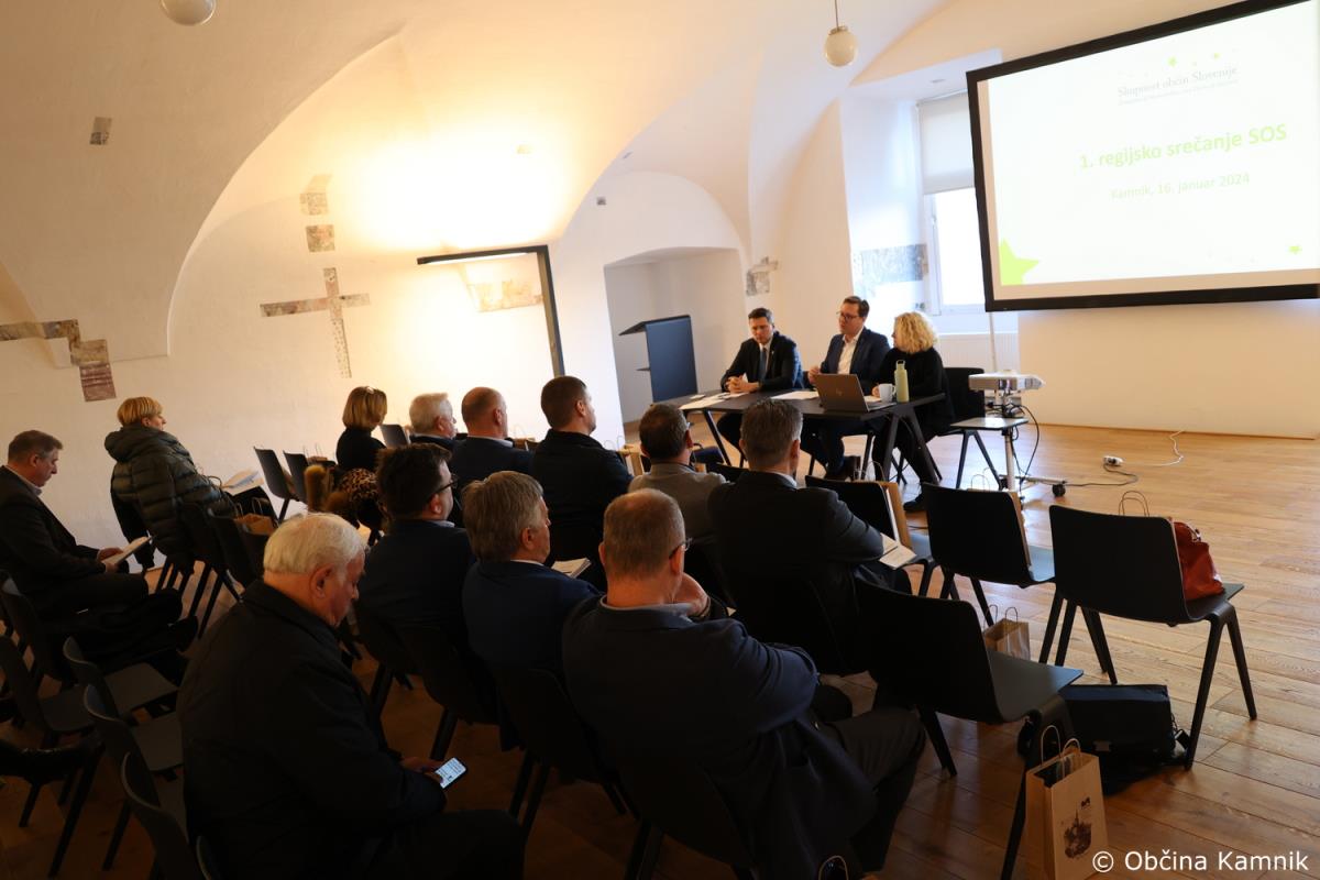 V Samostanu Mekinje se je včeraj, 16. januarja 2024, odvijalo prvo srečanje županij in županov občin Gorenjske in Osrednjeslovenske regije v organizaciji Skupnosti občin Slovenije. Zbrane je pozdravil tudi župan Matej Slapar skupaj s predsedujočim Skupnosti občin Slovenije dr. Vladimirjem Prebiličem.