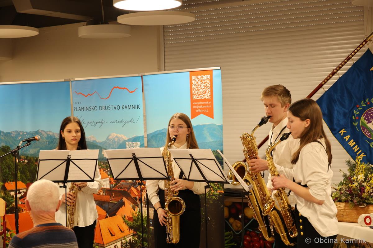 Za lep kulturni program so poskrbeli kvartet saksofonov iz Glasbene šole Kamnik, pevec Primož Krt in citrar Tomaž Plahutnik.