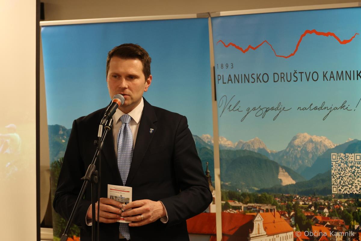 Župan Matej Slapar je zbrane planince pozdravil in dejal: »Čestitke za vse, kar ste v letu 2023 uspeli izpeljati, saj je za nami izjemno leto. Ravno ste začeli uporabljati prenovljeni planinski koči na Kamniškem in Kokrškem sedlu, ki sta vsem nam v ponos, pa se je v začetku avgusta zgodila naravna katastrofa, ki je ustavila vaše delovanje. Šlo je za izjemno razdejanje naših treh dolin in območja Tunjic, kjer so nas prizadeli plazovi. Tudi s pomočjo vaših članov, ki delujejo v Gorski reševalni službi Kamnik, smo izvedli uspešne evakuacije v tistih prvih dneh nesreče. Prav zaradi odličnega posredovanja ni bilo več smrtnih žrtev in materialne škode, hitro smo spet vzpostavili prometnice in tudi večina prebivalcev se bo lahko vrnila nazaj na svoje domove. Hvala članom društva, da ste opravili veliko dela na poškodovanih planinskih poteh in dostopih do gora. Iz poročil je razvidno, da društvo deluje na visoki ravni, in želim vam, da v letošnjem letu nadaljujete z aktivnostmi, kot ste si jih zadali. Hvala in uspešno leto 2024.«