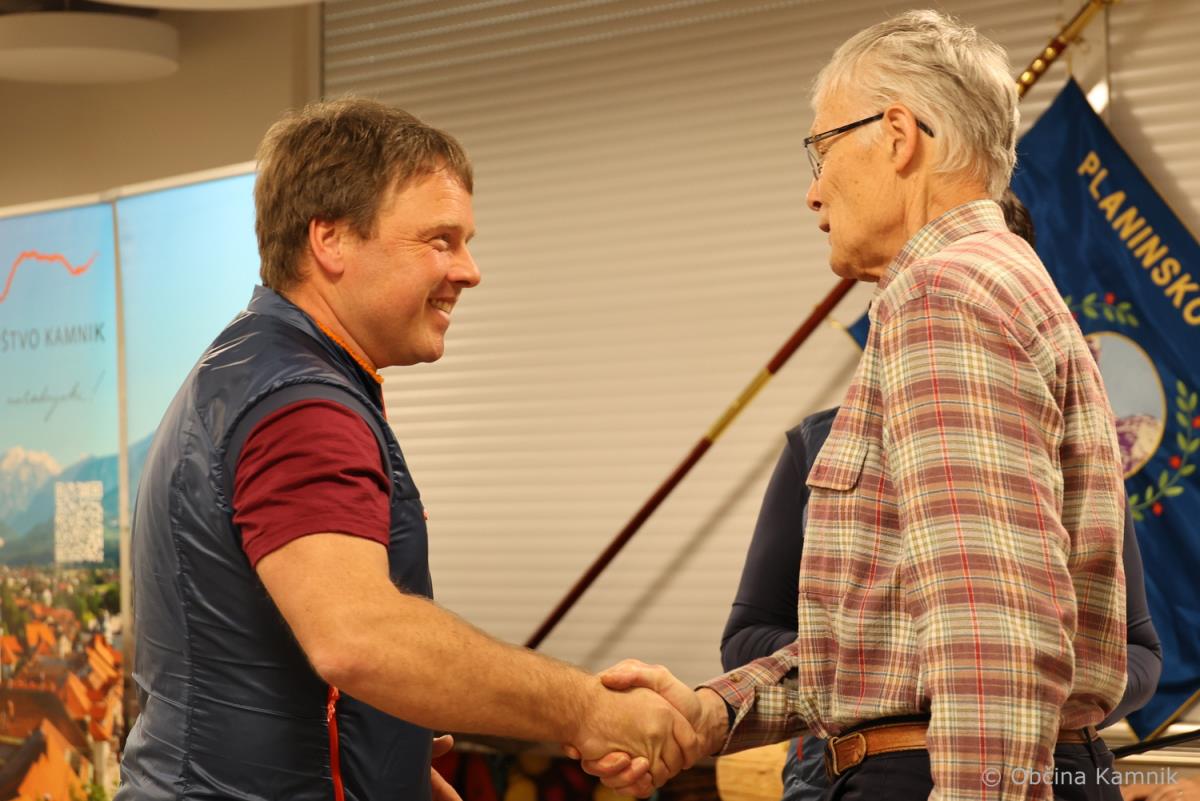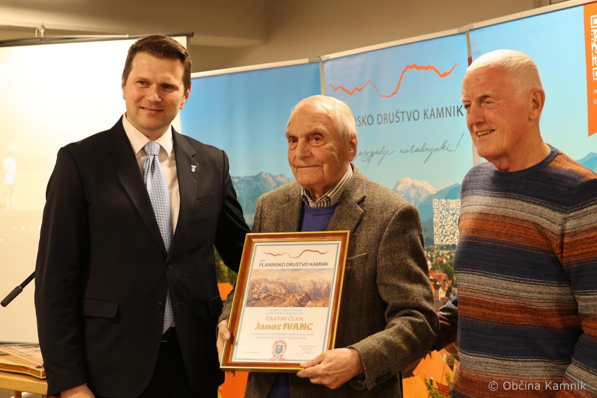 Na zboru članov Planinskega društva Kamnik so svečano podelili tudi častni naziv Janezu Ivancu, ki je bil eden od pobudnikov sodelovanja s pobrateno avstrijsko Občino Trofaiach.