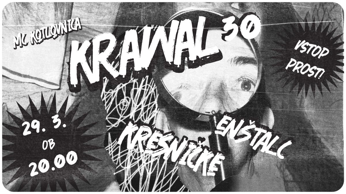 S Kulturnim društvom ROV Železniki prirejamo prav posebni petkov rompompom s pank koncertom, razstavo in slavljenjem 30. obletnice festivala KRAWAL. Zakaj? Zakaj pa ne!