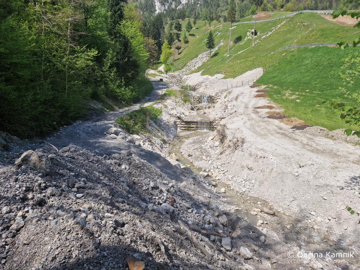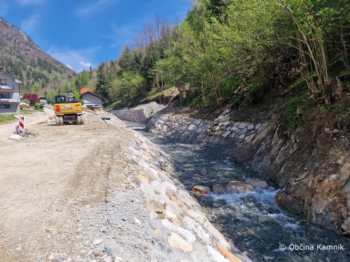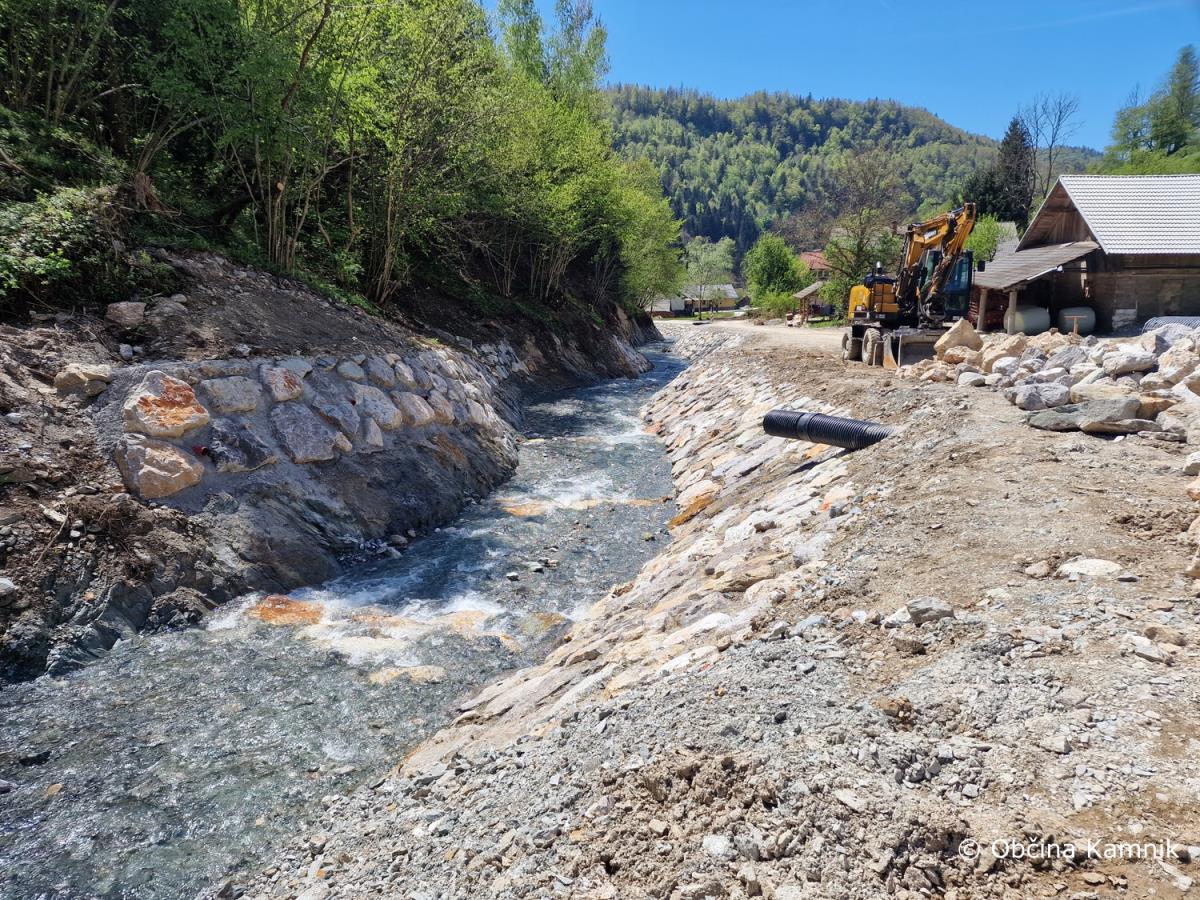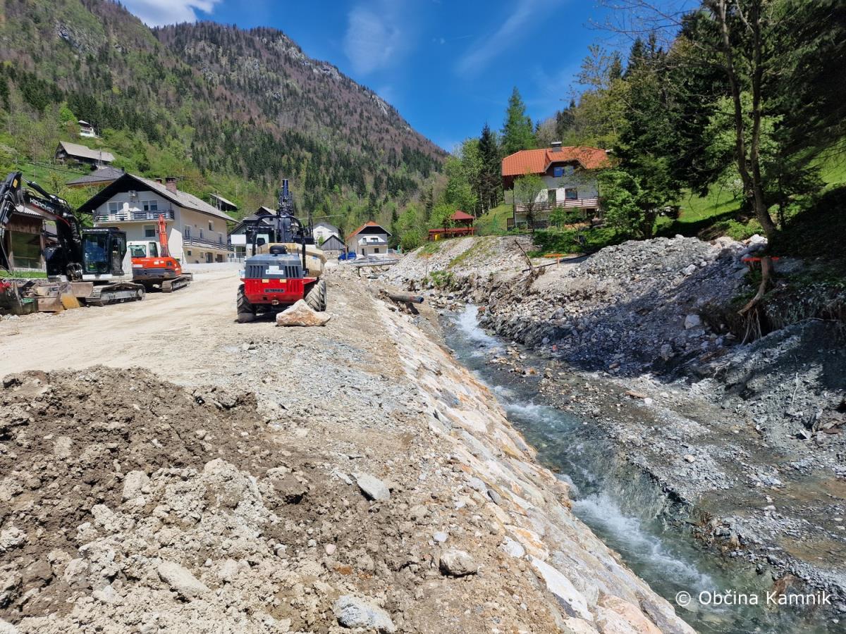 Na območju Občine Kamnik poteka več delovišč sanacijskih obnov vodotokov in hudournikov. Direkcija Republike Slovenije za vode na podlagi izdelanega plana sanacije za izvedbo ureditev vodotokov po poplavah, skupaj s podjetjem Hidrotehnik d. o. o., ter podizvajalci izvaja sanacijo po poplavah. Z urejanjem in sanacijami vodotokov po poplavah se v prvi vrsti zagotavlja večja pretočnost, čiščenje naplavin in plavja ter zavarovanje poškodovanih brežin vodotokov. Direkcija Republike Slovenije za vode je pripravila posebno aplikacijo preko katere lahko spremljate delovišča koncesionarja vobčini Kamnik. V času prvomajskih praznikov dela niso potekala.
