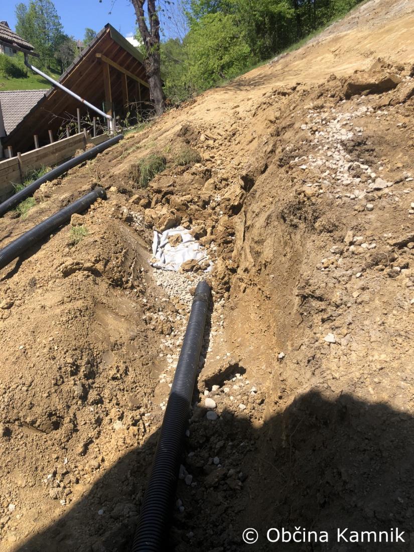 V avgustovskih poplavah v preteklem letu je prišlo do poškodovanja dela fekalne kanalizacije v Šmarci. Na podlagi izdelane projektne dokumentacije in recenzije Državne tehnične pisarne je bil izveden javni razpis. Izbrani izvajalec del Žurbi Eko d.o.o. izvaja sanacijo dela poškodovanega razbremenilnega kanala v dolžini 58 metrov. Vrednost sanacije znaša 69.302 evrov. Gradbena dela zajemajo vgradnjo prefabriciranih armirano-betonskih škatlastih prepustov dimenzij 2 x 1,5 x 2 metra, ki se bodo položili na podbeton. Iztok razbremenilnega fekalnega kanala se bo prilagodil brežini struge Kamniške Bistrice ter se zaključil z iztočnim portalom. Dela bodo zaključena v mesecu maju. V času prvomajskih praznikov dela niso potekala.