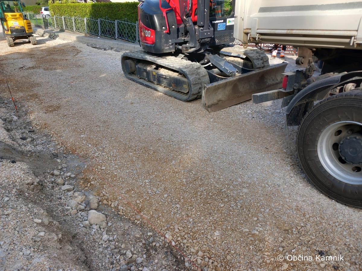 Izvajalec del, Komunalno podjetje Kamnik d. o. o., izvaja sanacijo cestišča na območju Novega trga, JP 660311, v predvideni dolžini 110 m.