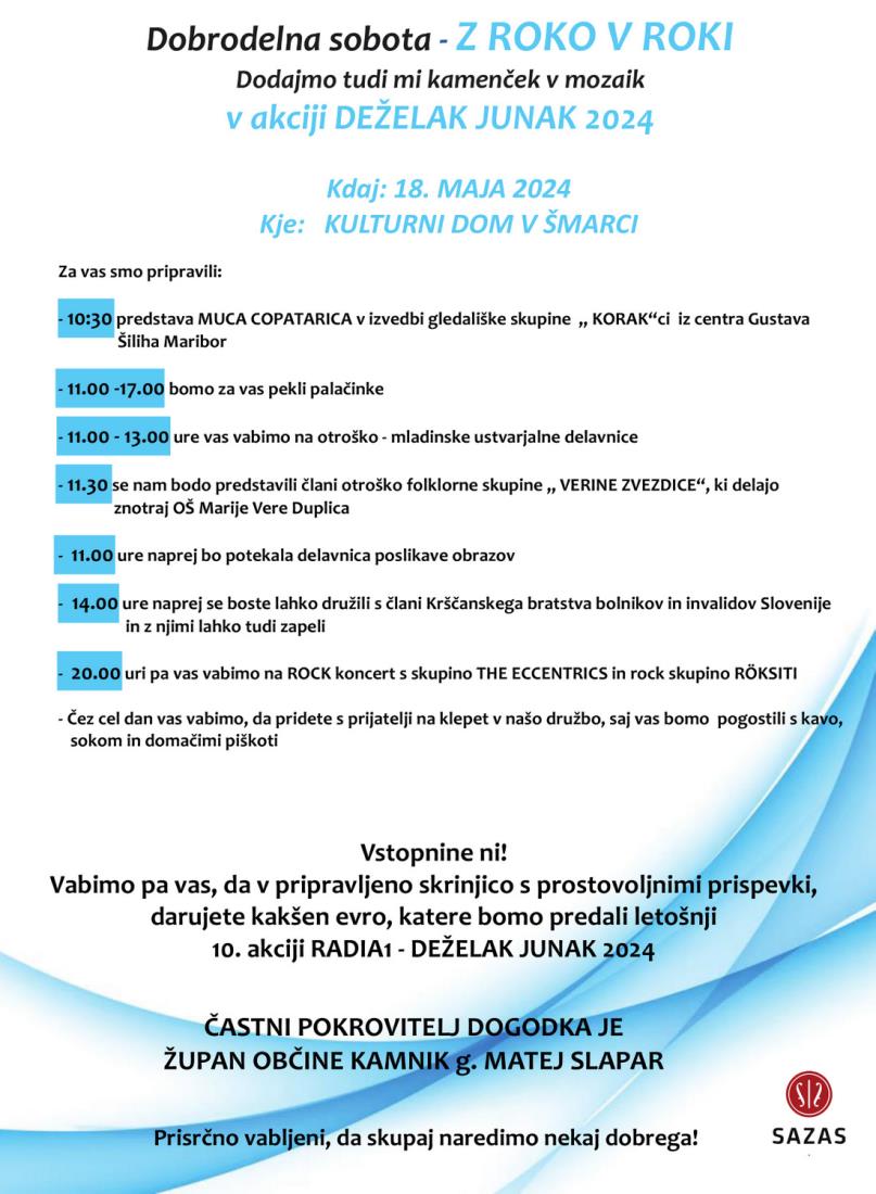 Namesto vstopnine, bomo čez cel dan zbirali prostovoljne prispevke, ki jih bomo namenili letošnji akciji DEŽELAK JUNAK 2024.