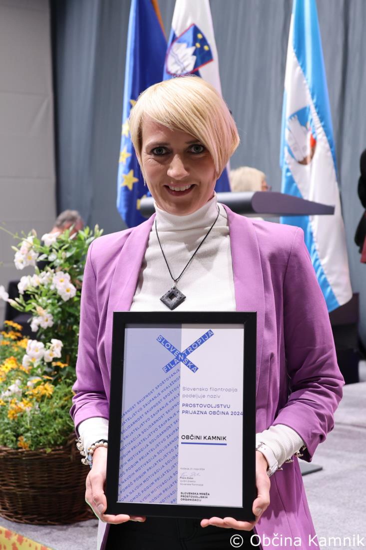 Občina Kamnik je skupaj z ostalimi 41 slovenskimi občinami s strani Slovenske filantropije spet prejela naziv Prostovoljstvu prijazna občina, ena občina pa je na novo prejela ta častni naziv. Priznanje je v imenu Občine Kamnik v Športni dvorani Kočevje prevzela podžupanja Romana Učakar skupaj z višjo svetovalko za področje družbenih dejavnosti Katjo Vegel. Priznanje pa ni le priznanje Občini, temveč predvsem kamniškim prostovoljnim organizacijam, ki smo jim hvaležni in jim iskreno čestitamo, saj je to njihova nagrada.
